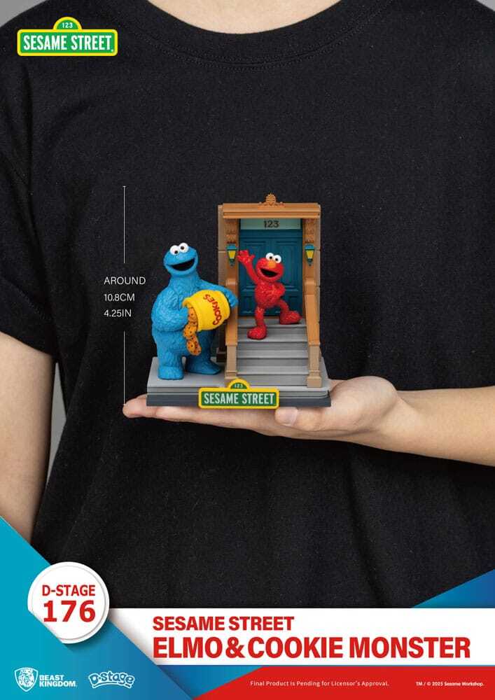 Hol dir den verspielten Charme der Sesamstraße mit dieser 11 cm großen PVC-Statuette von Elmo und Krümelmonster in deine Sammlung. Diese Figur fängt ihre fröhlichen Ausdrücke und lebhaften Persönlichkeiten ein und zelebriert den Spaß und die Freundschaft dieser beliebten Figuren.