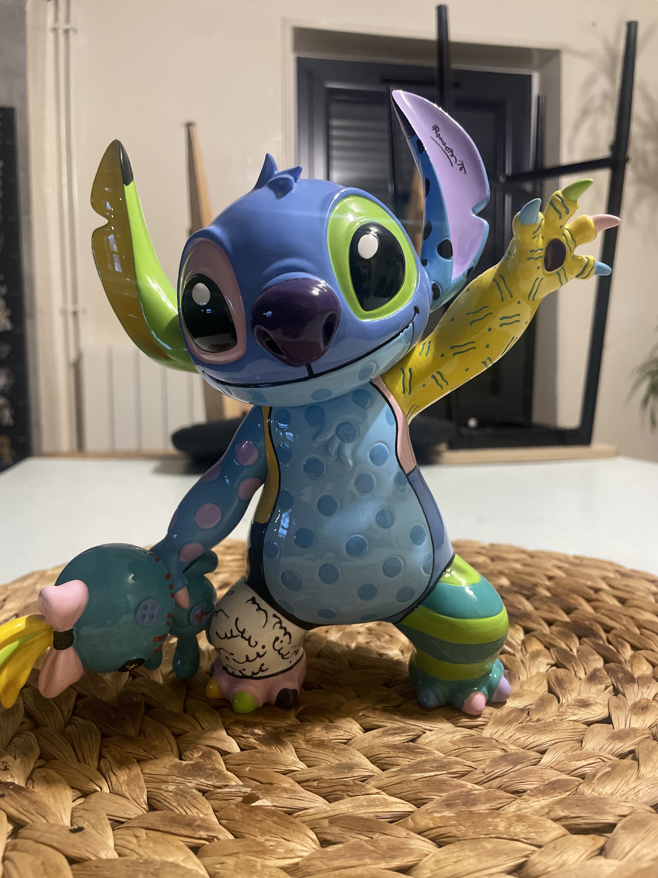 Disneys freundlicher Außerirdischer Stitch hat in dieser auffälligen Figur, die 2024 auf den Markt kommt, die Romero-Britto-Behandlung erhalten. Hält man Lilos treue Scrump-Stoffpuppe in einer Hand und winkt mit der anderen, würde diese handbemalte Figur in leuchtenden Farben aussehen großartig als Ausstellungsstück in jedem Zuhause. Brittos Verwendung von Farben und Mustern ist unverkennbar, Muster und Farbpalette kollidieren miteinander und machen dieses Stück zu einem wirklich einzigartigen Sammlerstück. Dies ist kein Spielzeug oder Kinderprodukt. Nur für Erwachsene.