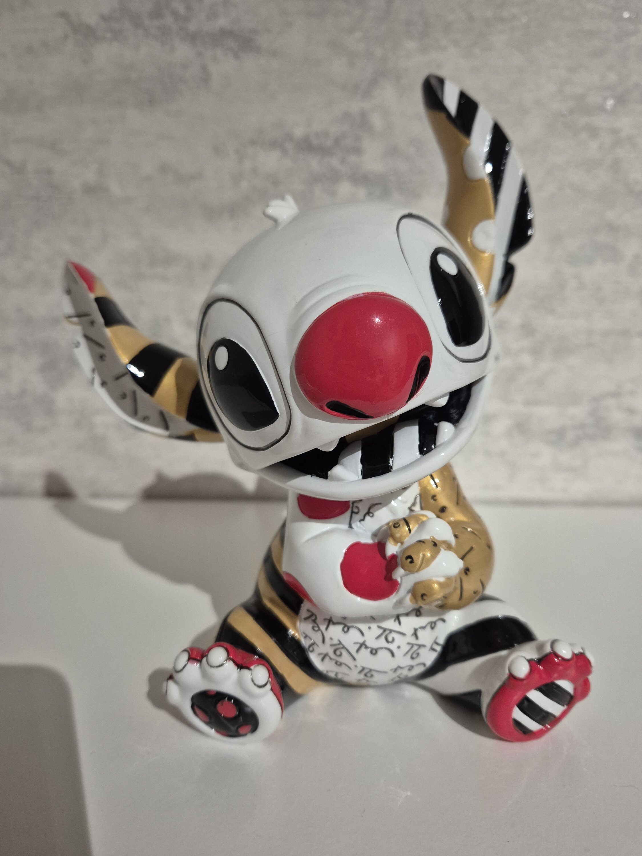 Stitch erhält in dieser neuen Skulptur des Pop-Art-Künstlers Romero Britto den Midas Touch. Das beliebte Weltraumexperiment erstrahlt in sattem Gold, kräftigem Schwarz, Rubinrot und glänzendem Weiß. Nur für kurze Zeit erhältlich.