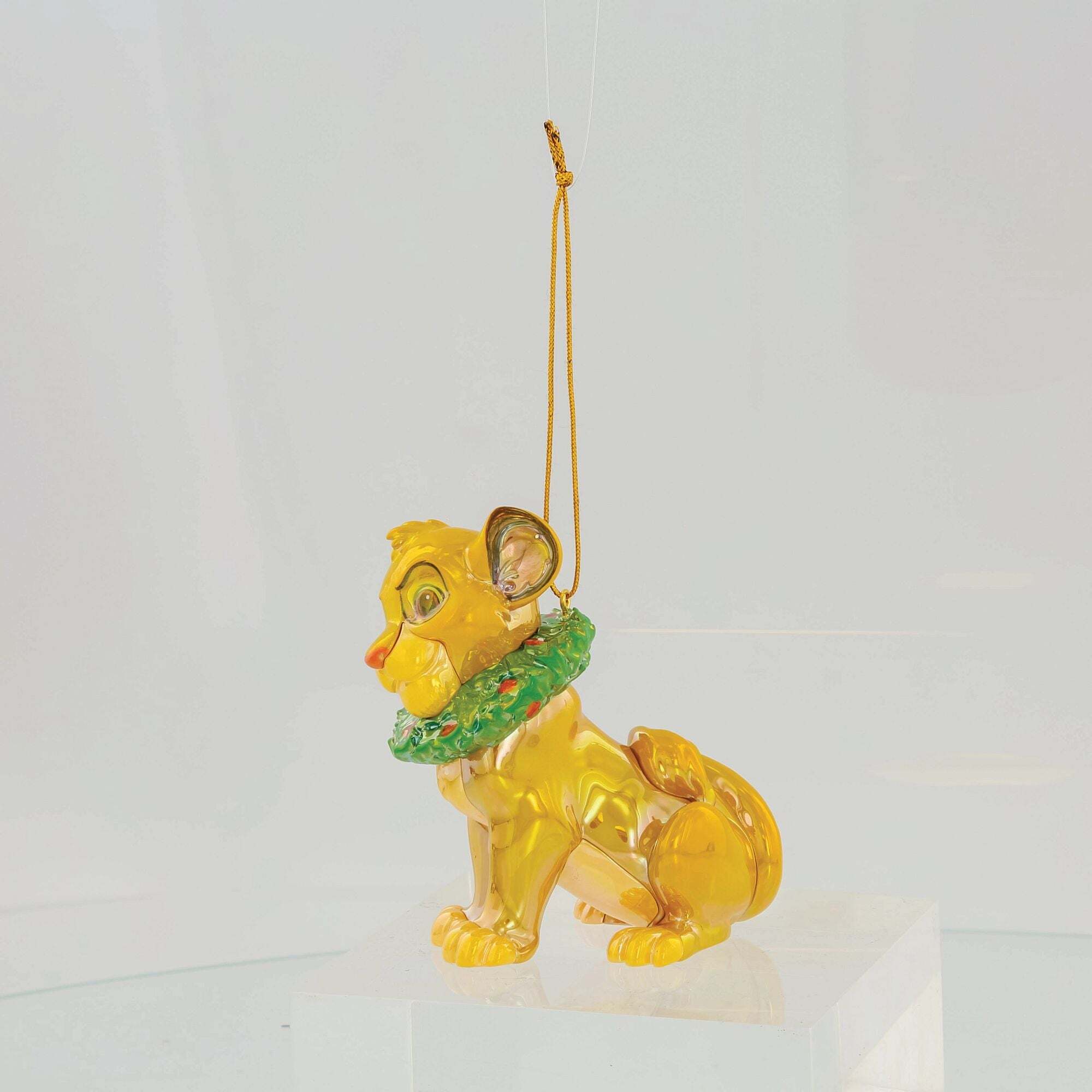 Diese aus PVC gefertigte Figur mit schimmernder, irisierender Oberfläche präsentiert den jungen Löwen inmitten eines Weihnachten und verleiht Ihrem Baum einen edlen metallischen Glanz. Der Schmuck fängt Simba Unschuld und Lebensfreude in einem modernen und eleganten Design ein. Fertig zum Aufhängen, bringt dieses Sammlerstück Wärme und wilde Magie in Ihre Weihnachtsdekoration und ehrt gleichzeitig diesen beliebten Disney-Klassiker.