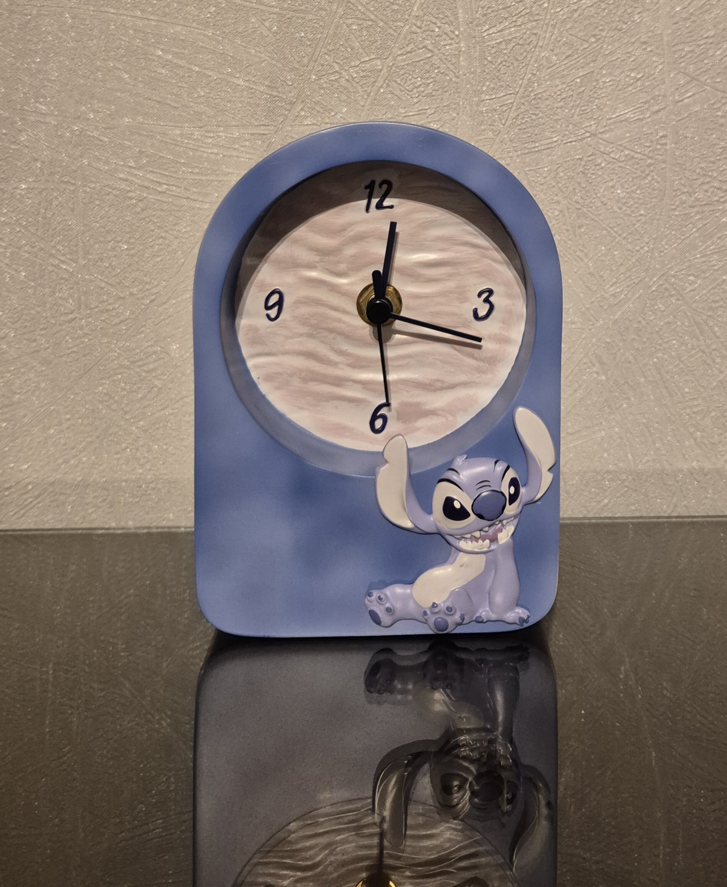 Tick-Tack im Disney-Stil| Wir präsentieren die Stitch -Tischuhr mit Stitchs Charm auf der Vorderseite. Diese bezaubernde Uhr bringt verspielte Energie an Ihren Arbeitsplatz. Lassen Sie sich von Stitch durch den Tag begleiten und verleihen Sie jeder Stunde einen Hauch von Disney-Magie.