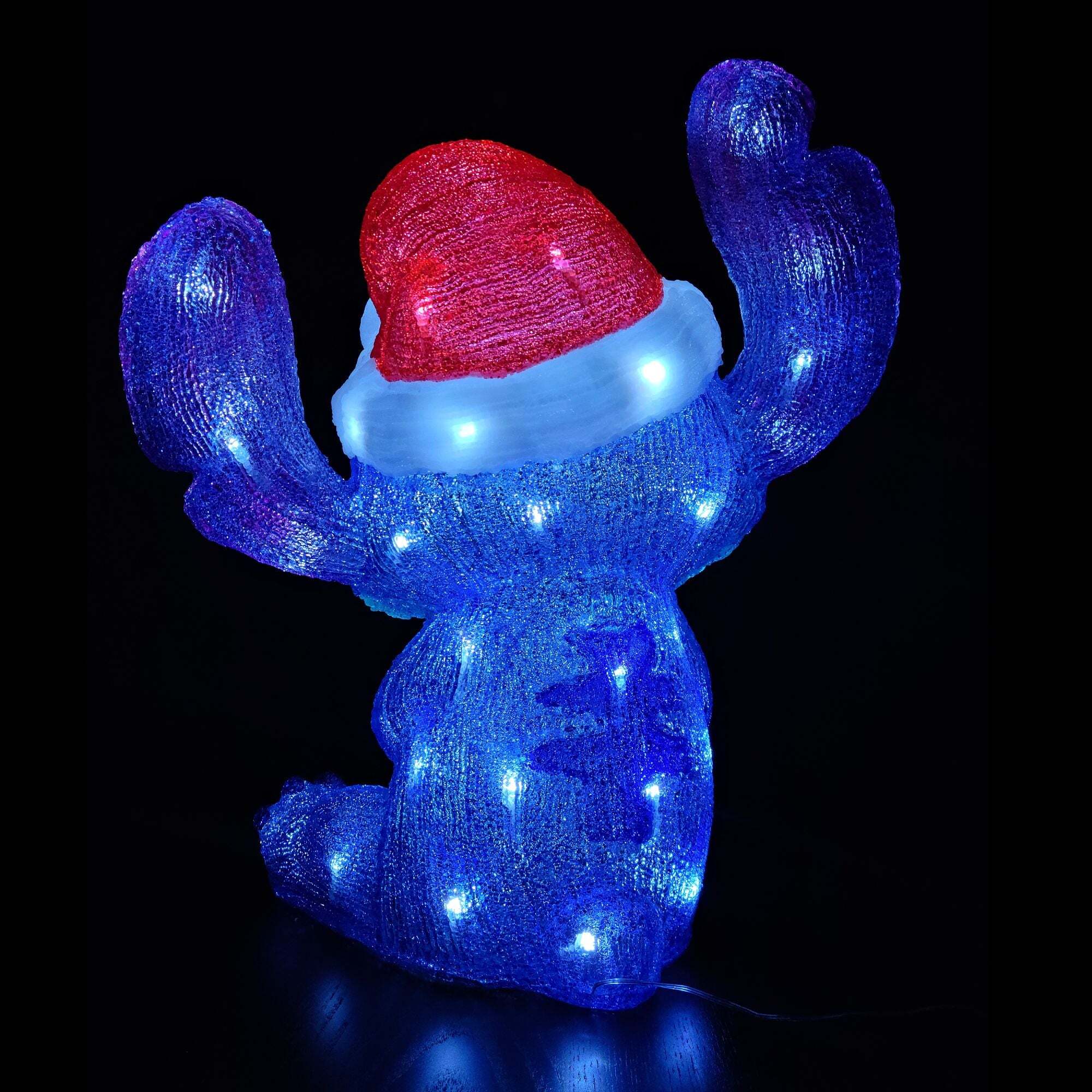 Stitch mit seinem festlichen Hut passt perfekt zur Weihnachtsstimmung und verleiht Ihrem Zuhause oder Ihrer überdachten Veranda mit dieser leuchtenden Acryldekoration eine fröhliche Note. Perfekt, um Ihre Feierlichkeiten zu verschönern. Einfach an eine wetterfeste Steckdose anschließen und schon sorgt es die ganze Saison über für einen magischen Effekt. Netzteil inklusive.