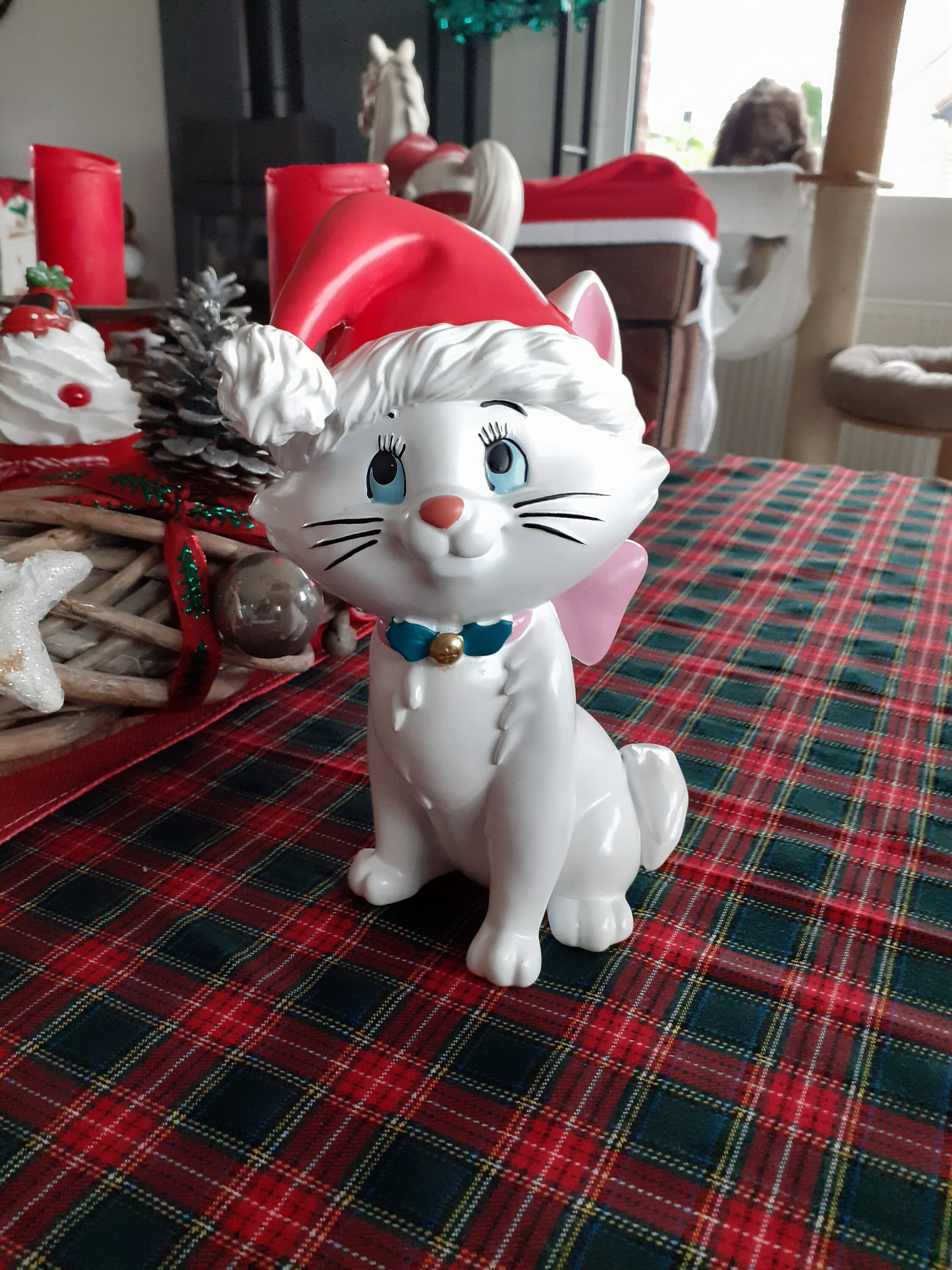 à avoir absolument, avec ses yeux malicieux, son regard, et son bonnet de noël, on ne peux que fondre devant cette magnifique figurine . Elle est en résine, assez grande très belle décoration à mettre sur une jolie table pour un noël DISNEY. JE CRAQUE +++++++++