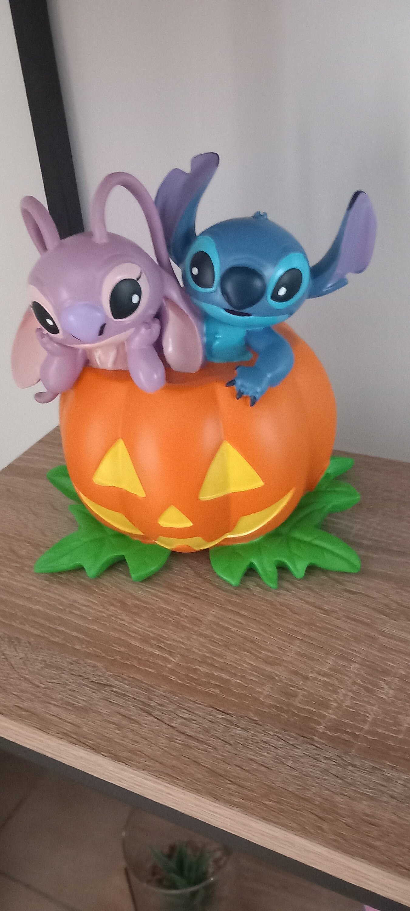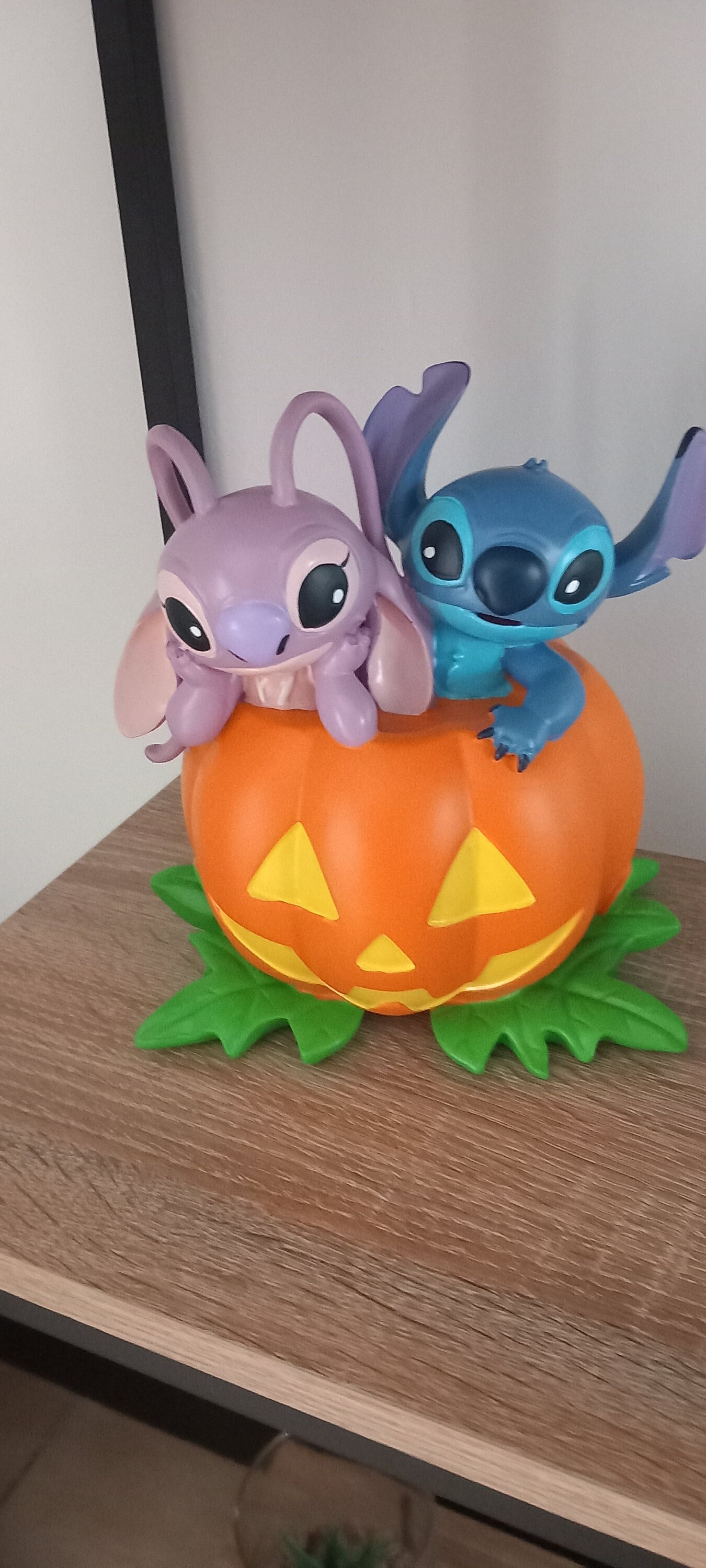 trop belle, original de voir stitch et angel dans une citrouille. Elle est en résine et de taille raisonnable. La figurine est venue compléter ma collection Disney et a fait le bonheur de mes petits enfants qui adorent voir mes nouveautés; Je recommande aux collectionneurs +++++.