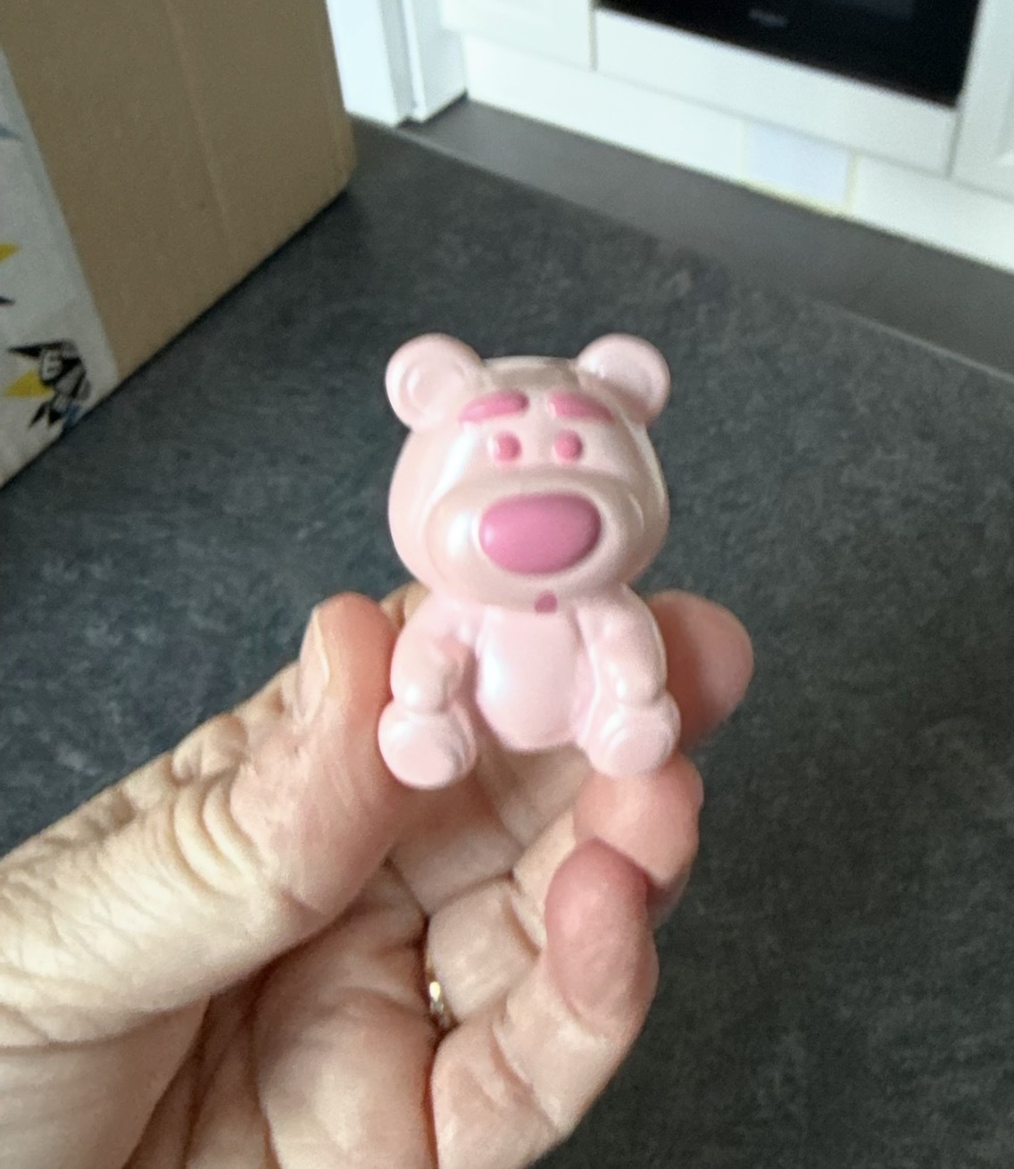 Wie süß, dieses Rosa, mit einem Bären als Überraschung im Inneren.