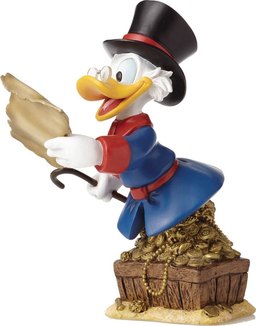 Dagobert Duck bricht mit dieser farbenfrohen büste, inspiriert von seinen Abenteuern in Disneys DuckTales-Fernsehserie, zu einer Expedition auf, um sein Vermögen zu mehren und zu schützen! Auf einer Schatztruhe sitzend, ist Dagobert bereit, mit Karte und Stock in der Hand nach weiteren Reichtümern zu suchen. Die Figur ist 20 cm groß.