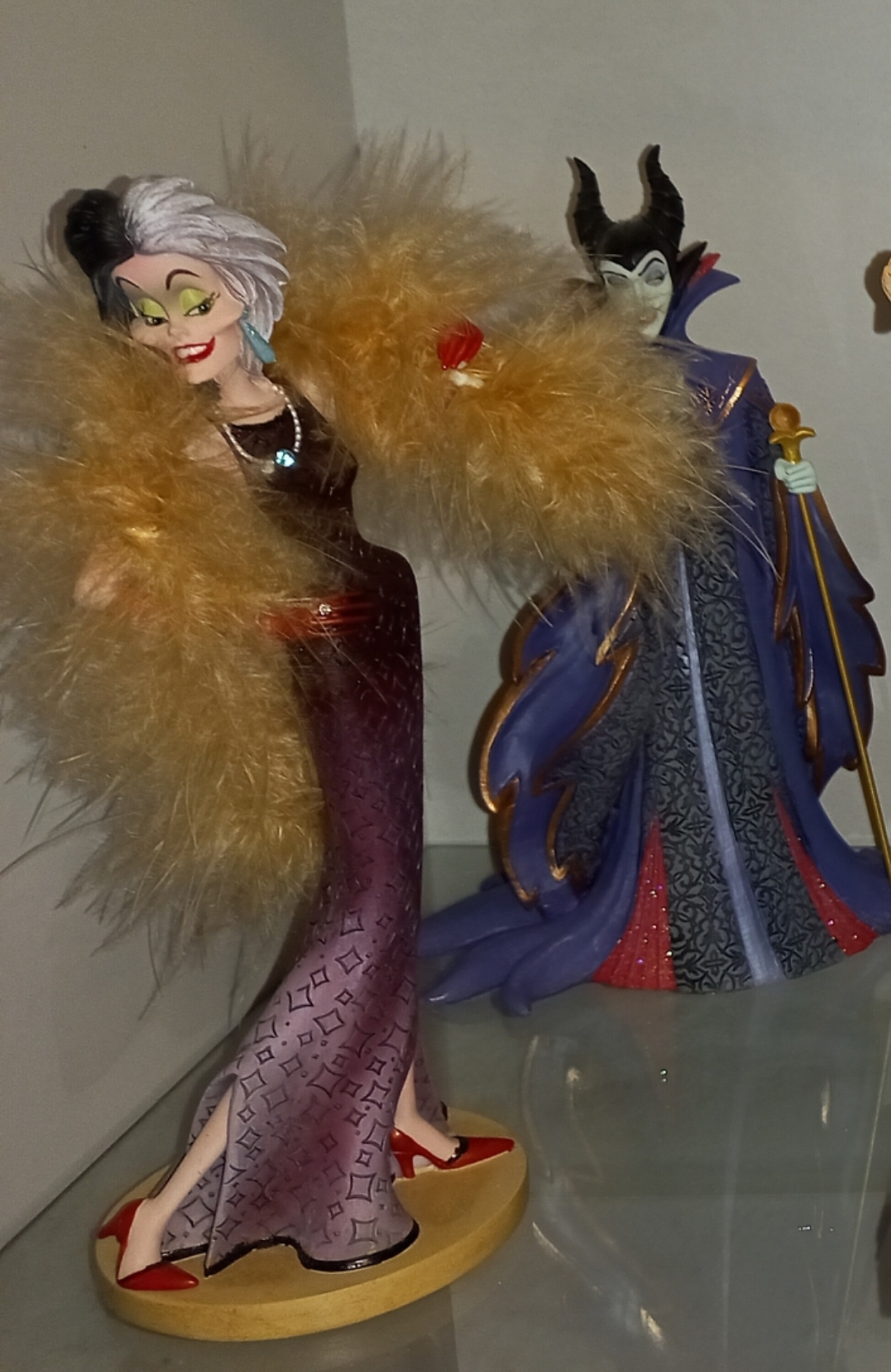 Eine prachtvolle Cruella de Vil-Statue mit einem Federschal, der ihr das gewisse Extra verleiht und sie zu einem echten Unikat macht! ❤️