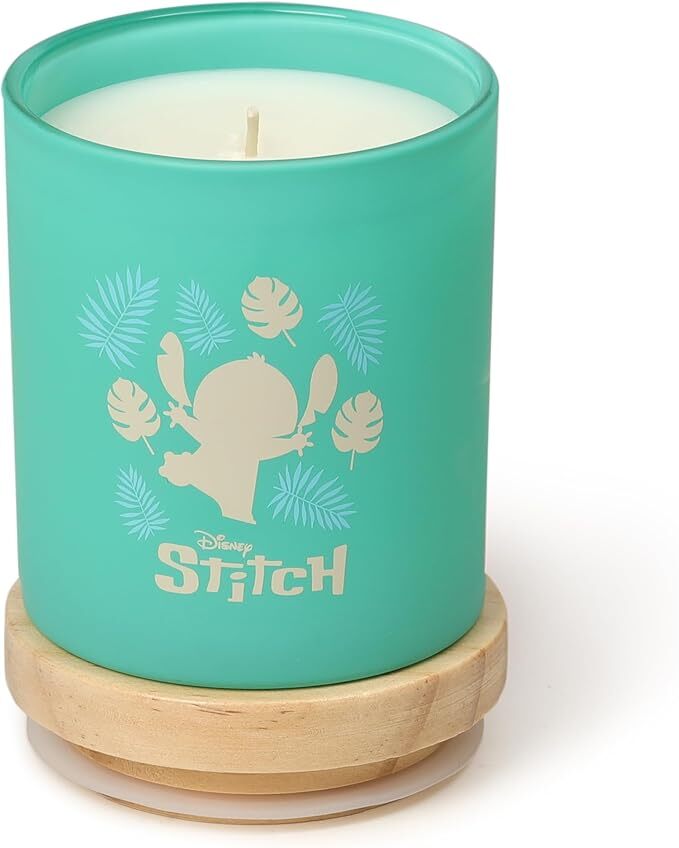 Die Kerze befindet sich in einem wunderschön gestalteten, aquamarinfarbenen Glasbehälter mit einer verspielten Stitch Silhouette an der Seite. Der Deckel ist mit einem fröhlichen Muster versehen und die Kerze wird in einer passenden Geschenkbox geliefert. Sie ist das perfekte Geschenk für jeden Disney-Fan.