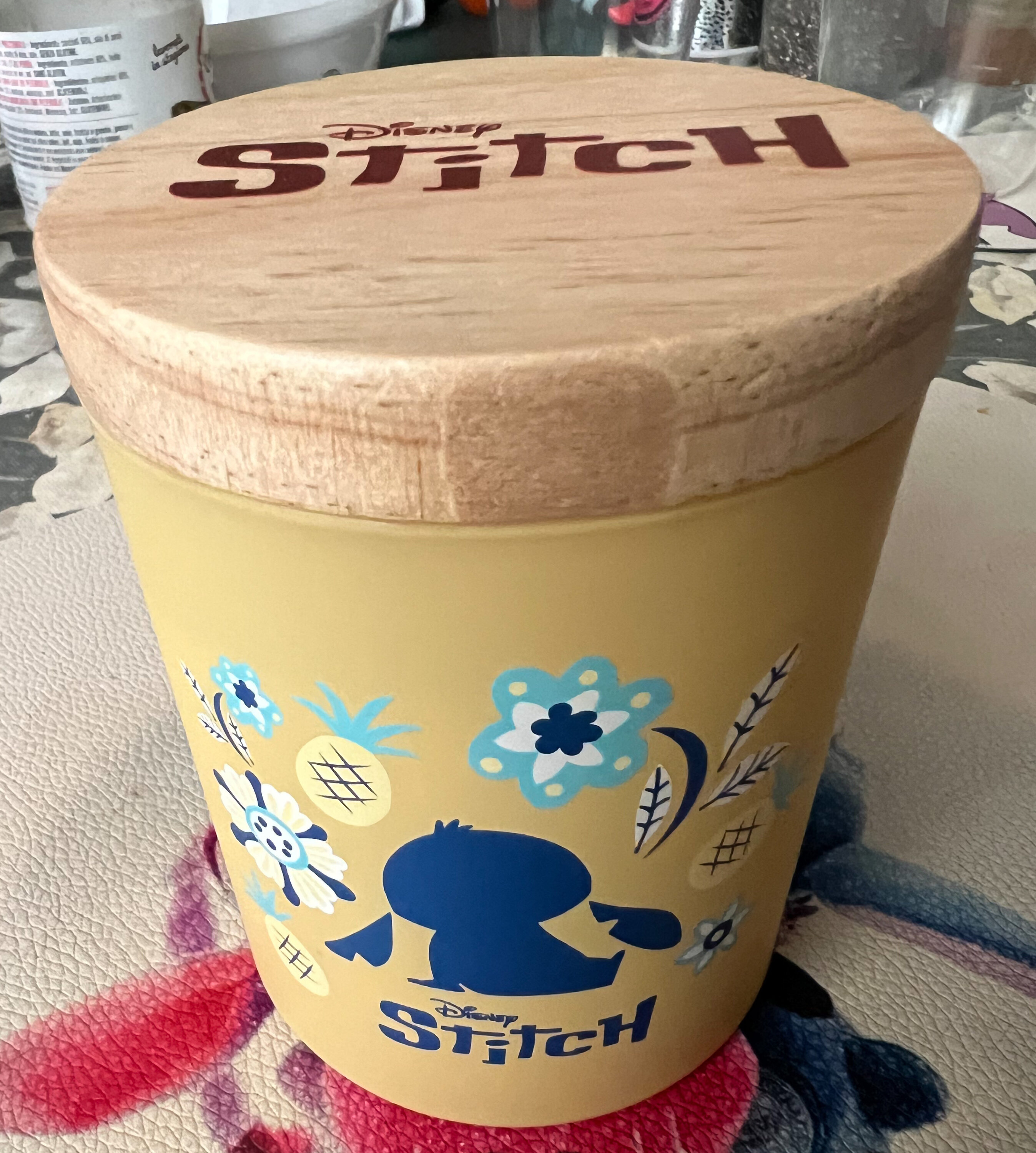 Die Kerze befindet sich in einem wunderschön gestalteten gelben Glasbehälter mit einer verspielten Stitch Silhouette an der Seite, hat einen charmant gestalteten Deckel und wird in einer passenden gelben Geschenkbox geliefert – die perfekte Ergänzung für jede Disney-Fan-Sammlung.