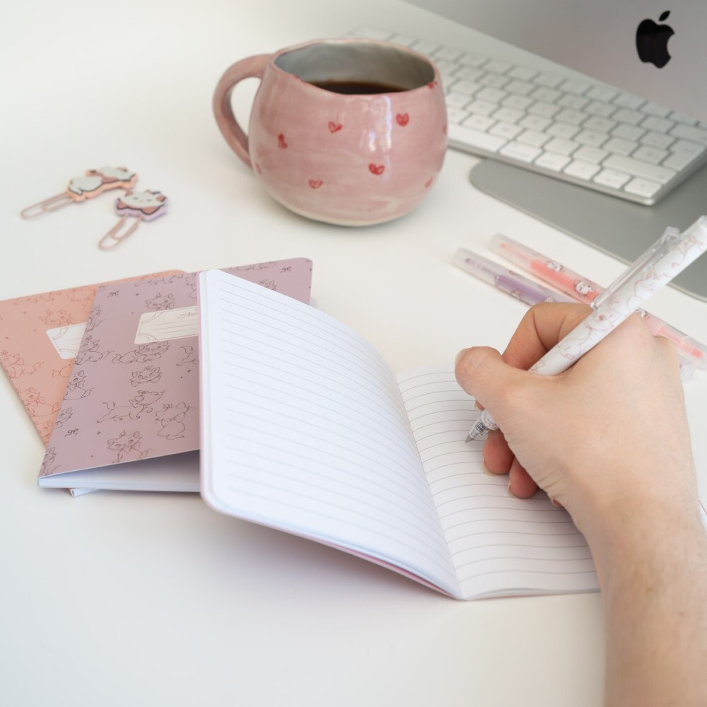 Enthält 3 Notizbücher im Format A6 (10,5 x 14,8 cm), einen Bleistift mit speziell geformtem Radiergummiaufsatz, 2 Büroklammern mit Aufsätzen, 1 Haftnotizblock, 1 stiftetui mit 4 Textmarkern, 2 Stickerbögen und einen Kugelschreiber mit schwarzer Tinte und Radiergummi.