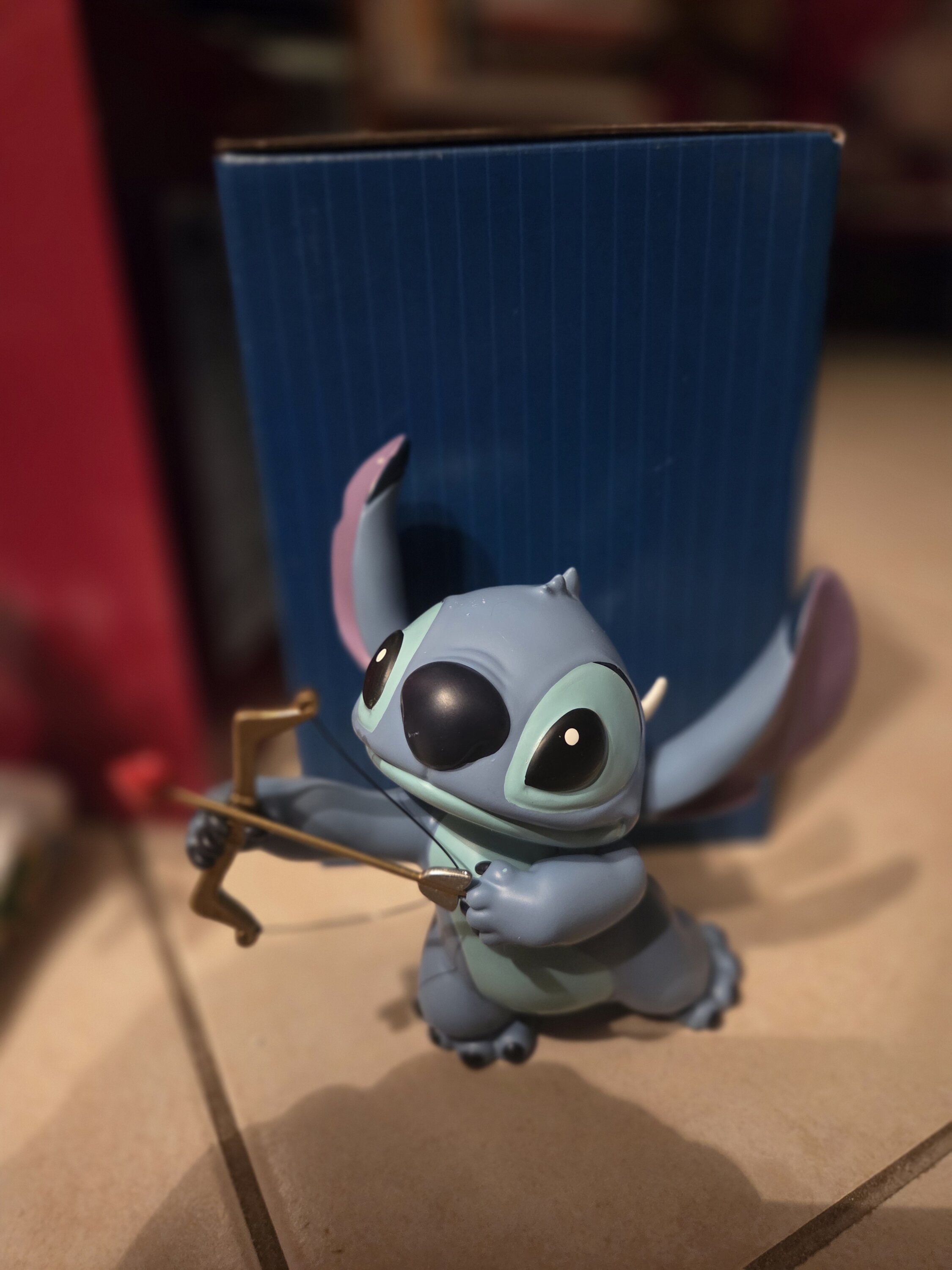Feiern Sie die Feiertage mit jedermanns beliebtestem Weltraumexperiment Stitch. Der handgefertigte und handbemalte Stitch wird als Amor verkleidet an Ihren Herzensfäden ziehen, gerade rechtzeitig, um den Valentinstag mit Ihrem Liebsten zu feiern.