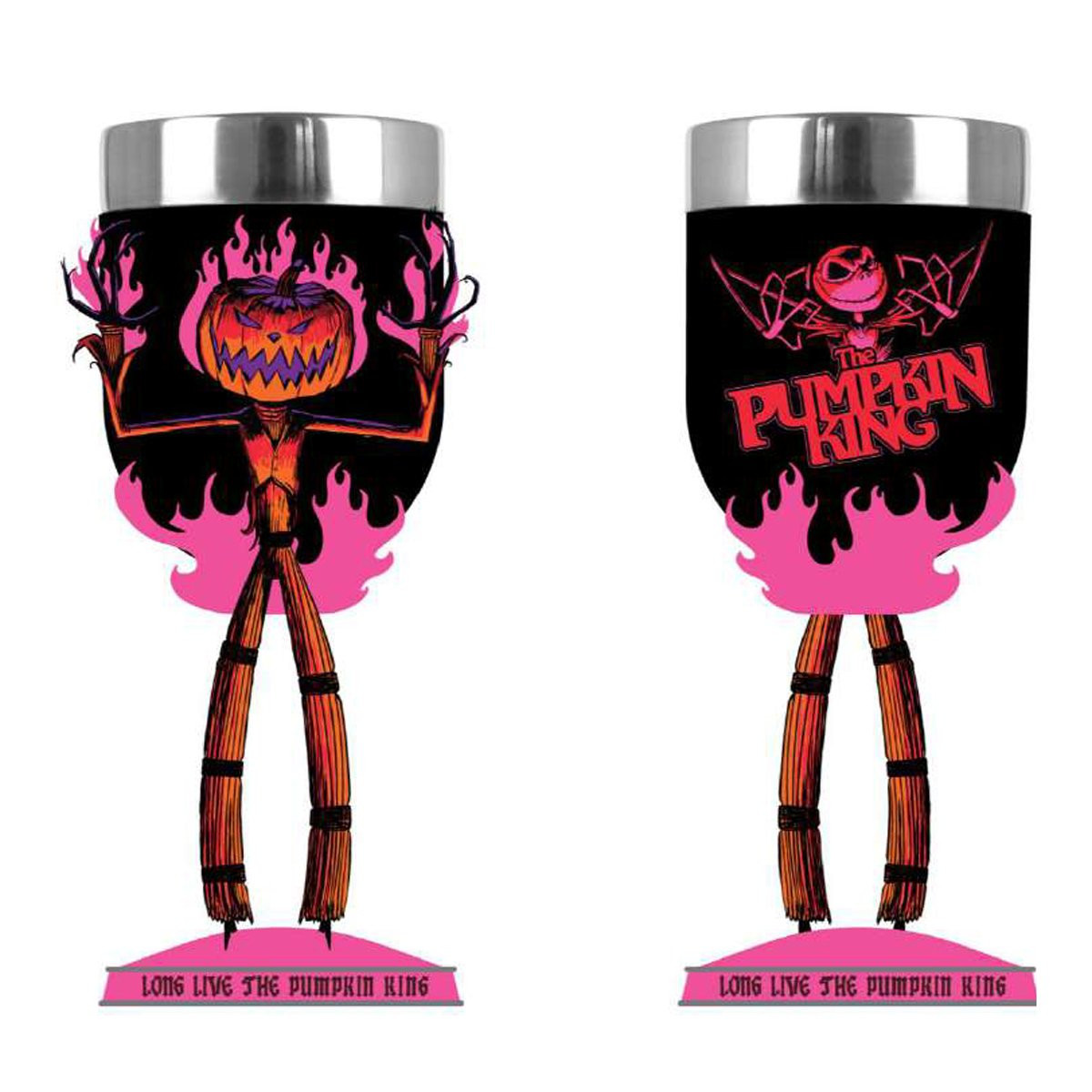 Hier ist der offizielle Halloween Town Kelch! Feiern Sie Ihre Feiertage mit Stil mit diesem dekorativen kelch aus Edelstahl, der mit dem gruseligen Bild des Kürbiskönigs geschmückt ist. Ideal für alle Fans von The Nightmare Before Christmas. Handgefertigt und sorgfältig bemalt, wird er in einer Geschenkbox geliefert. Dieses Produkt ist nur für Erwachsene bestimmt und kein Spielzeug oder Kinderprodukt.