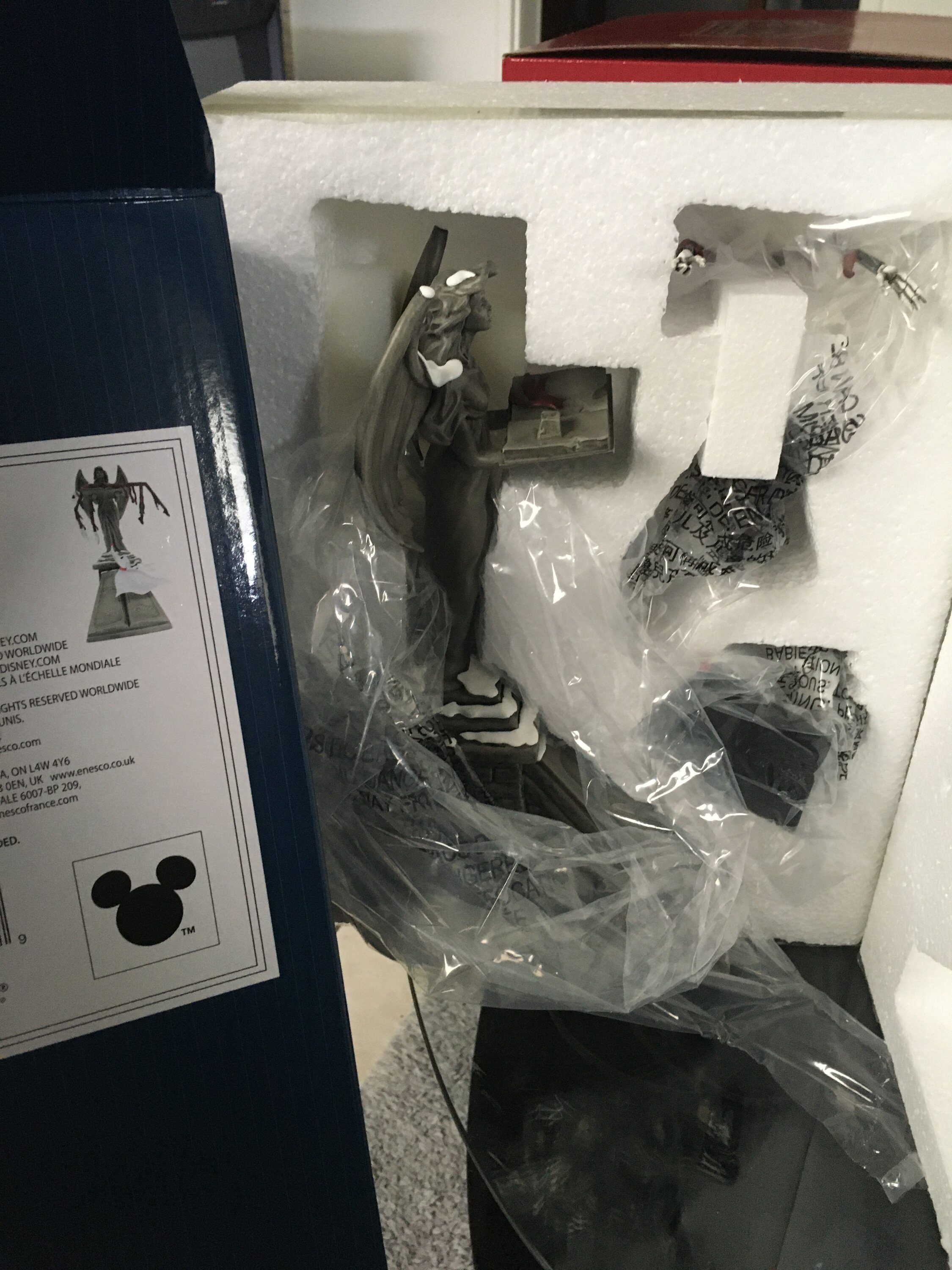 Ein leuchtender Zero blickt zu seinem besiegten Meister Jack Skellington auf, als dieser vom Himmel in die Arme eines engel fällt. Diese fachmännisch gefertigte und detailreiche neue Statue feiert den Fanliebling Tim Burtons „ Nightmare Before Christmas“.