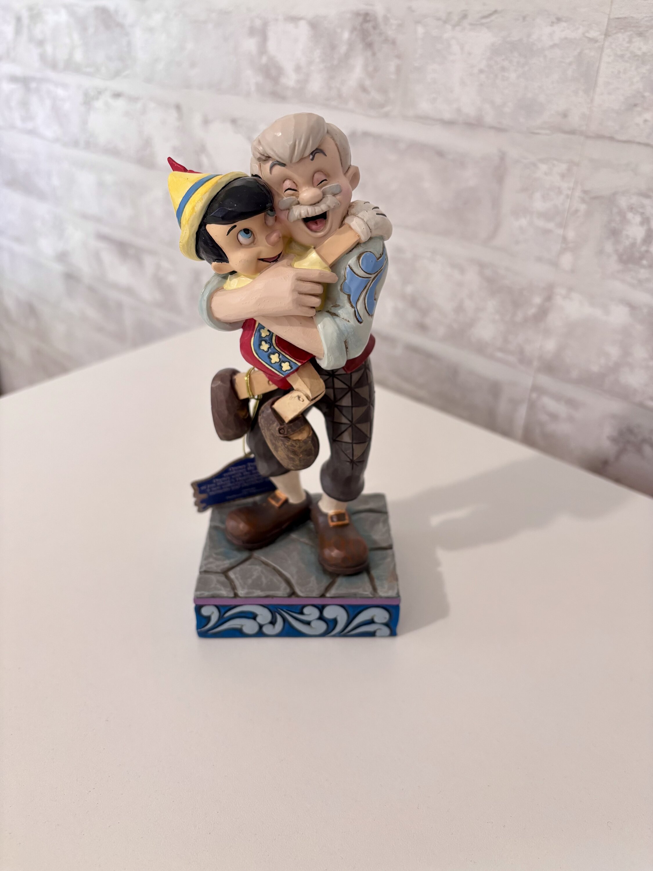 In dieser Figur gelang es Jim Shore, in einer Umarmung all die Zuneigung einzufangen, die ein Vater für seinen Sohn empfinden kann, und Pinocchio erwidert diese, wirklich berührend und gleichzeitig freudig dank Jim Shore