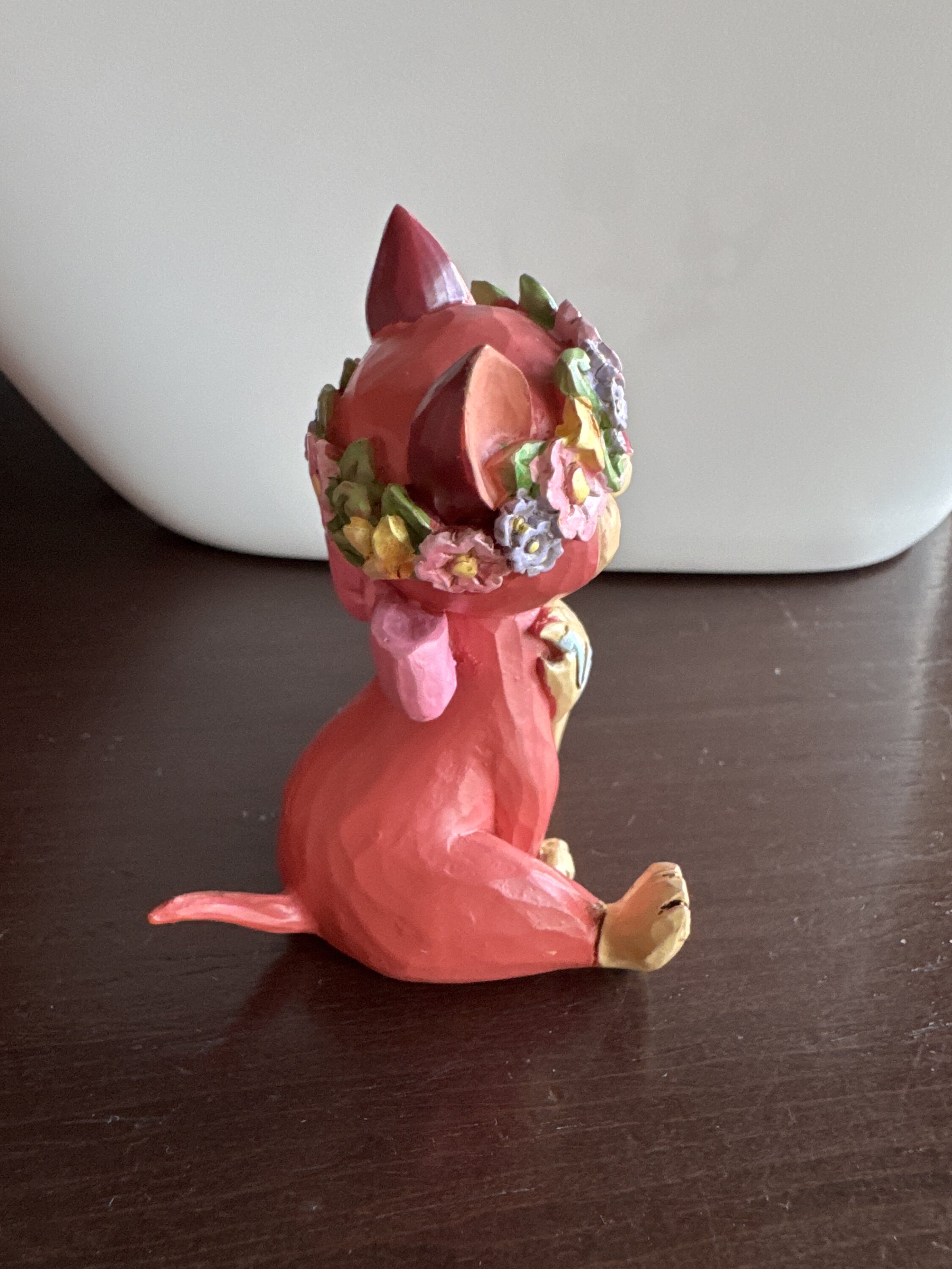 Dieses einzigartige Design von Jim Shore zeigt Dinah, die Katze aus Alice im Wunderland, geschmückt mit einer bezaubernden Blumenkrone und aufwendigem Rosemaling. Das verspielte Stück lädt uns ein, in den Kaninchenbau hinab in eine Welt der Fantasie und Magie zu wagen.