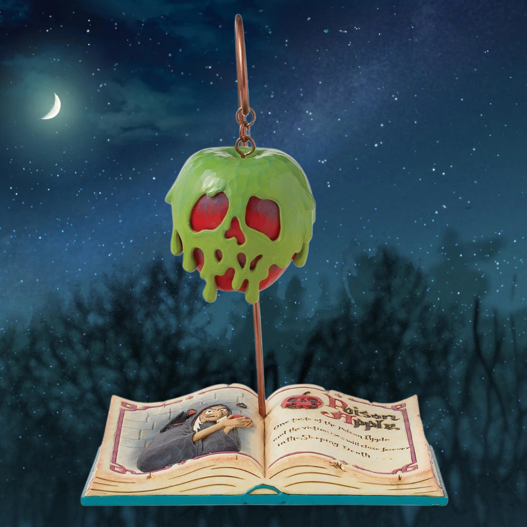 Diese Jim Shore Figur zeigt Schneewittchens Zauberbuch, das aufgeschlagen ist und eine Seite mit dem Giftapfel und einer Illustration der bösen Königin enthüllt. Der Apfel hängt zart an einem Faden, der aus dem Buch kommt! Entworfen vom preisgekrönten Künstler und Bildhauer Jim Shore für die Marke Disney Traditions . Diese Figuren sind kein Kinderspielzeug. Nur für Erwachsene bestimmt.