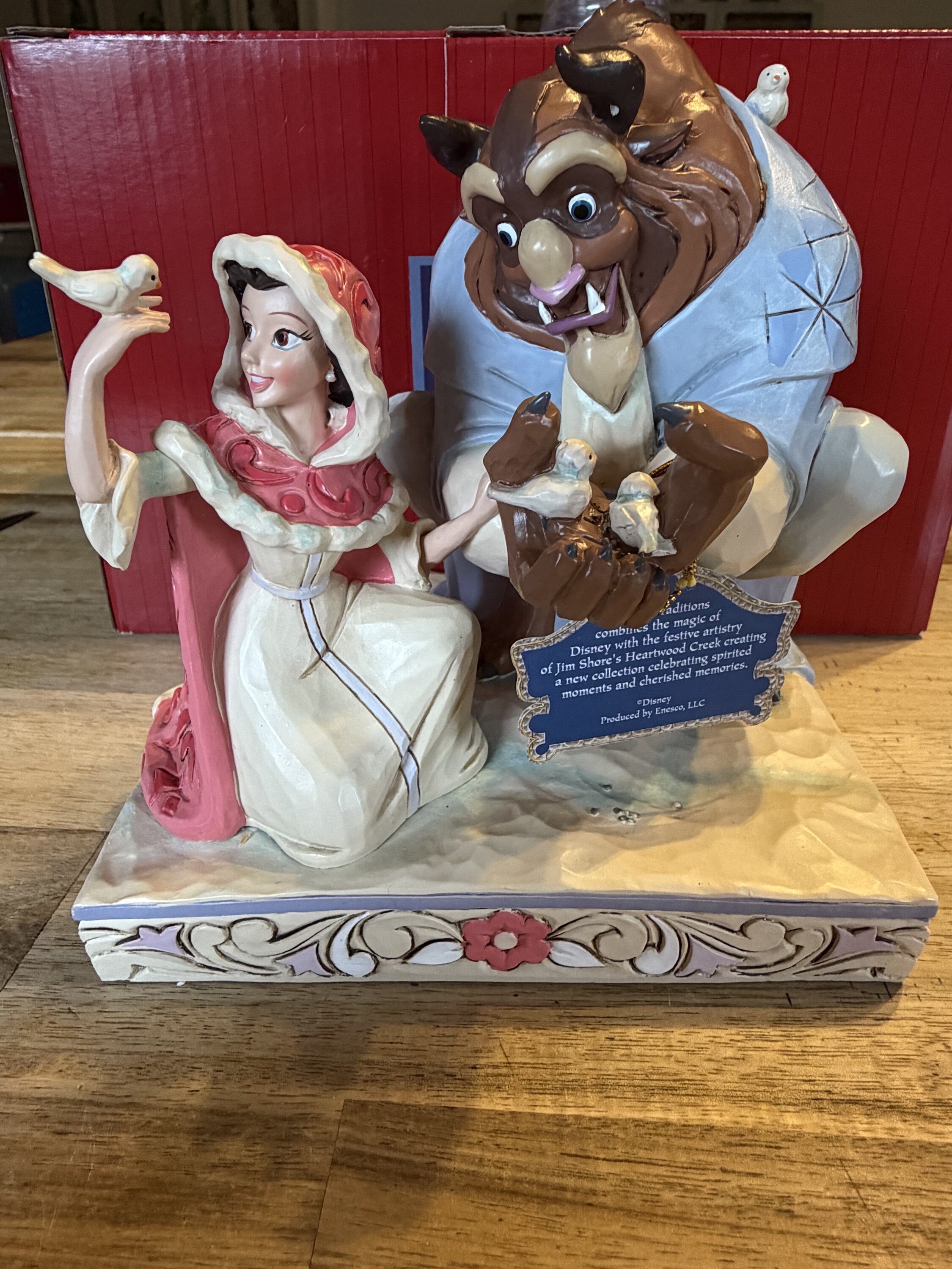 Belle und das Beast erleben in dieser herzerwärmenden Kreation von Jim Shore einen zärtlichen Wintermoment ❄️, umgeben von Vögeln 🕊️. Eine poetische Szene, die Freundschaft, Güte und innere Schönheit feiert.