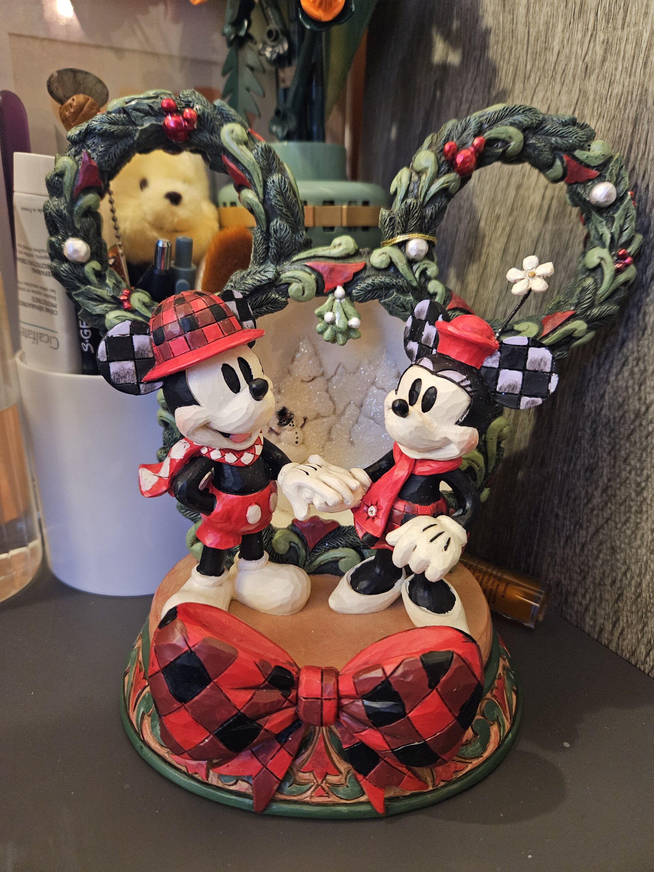 Très jolie diorama de Mickey et Minnie Noël Belle taille.