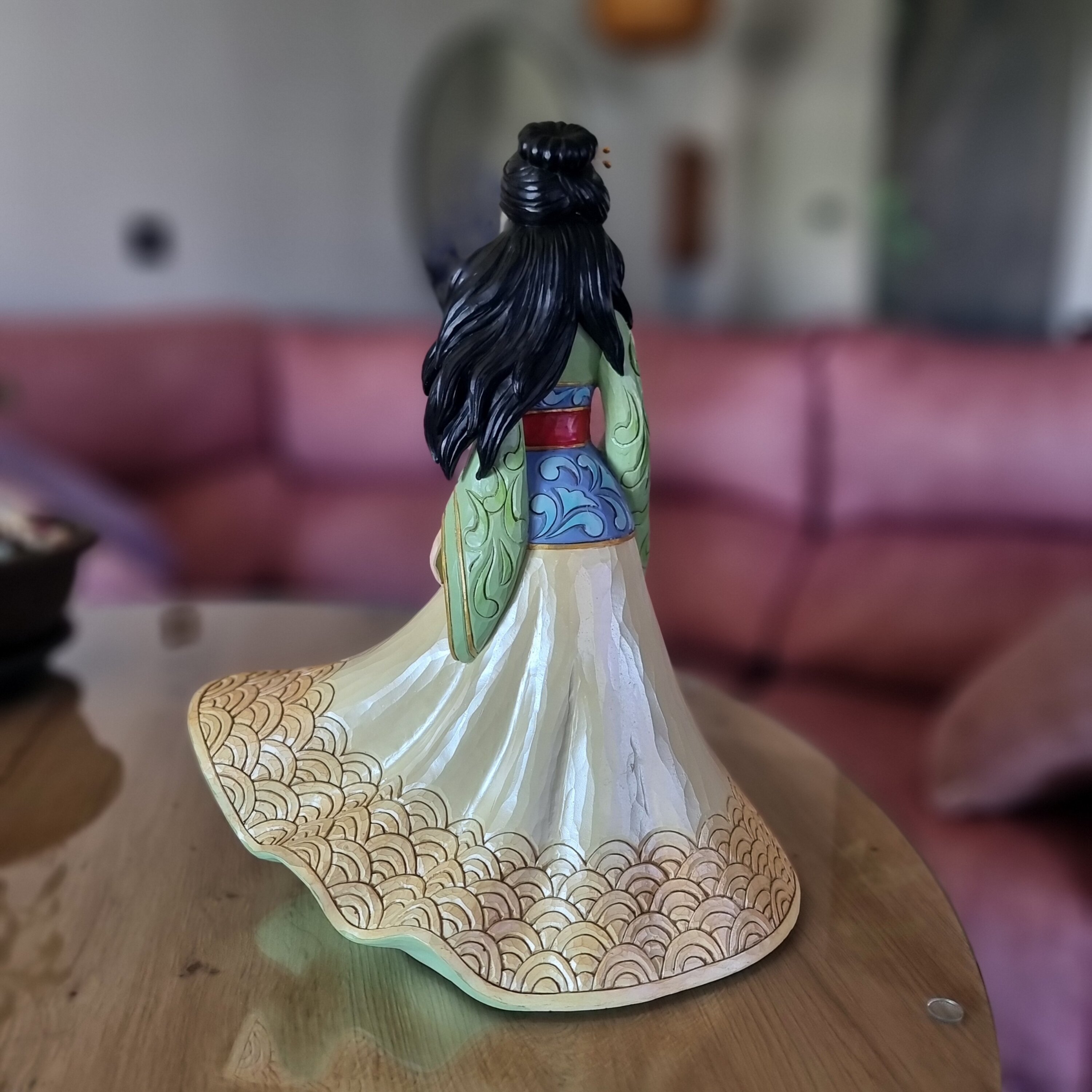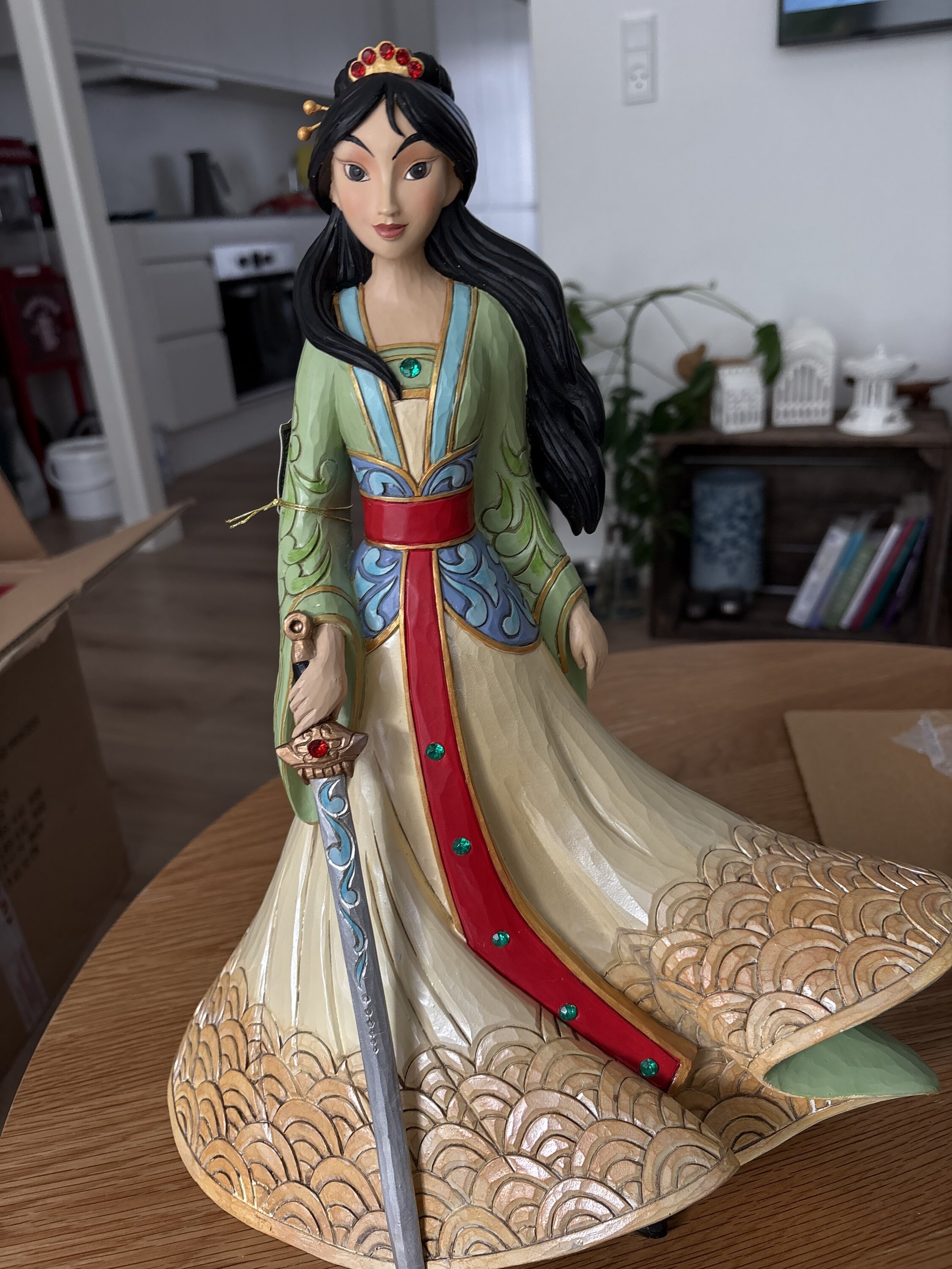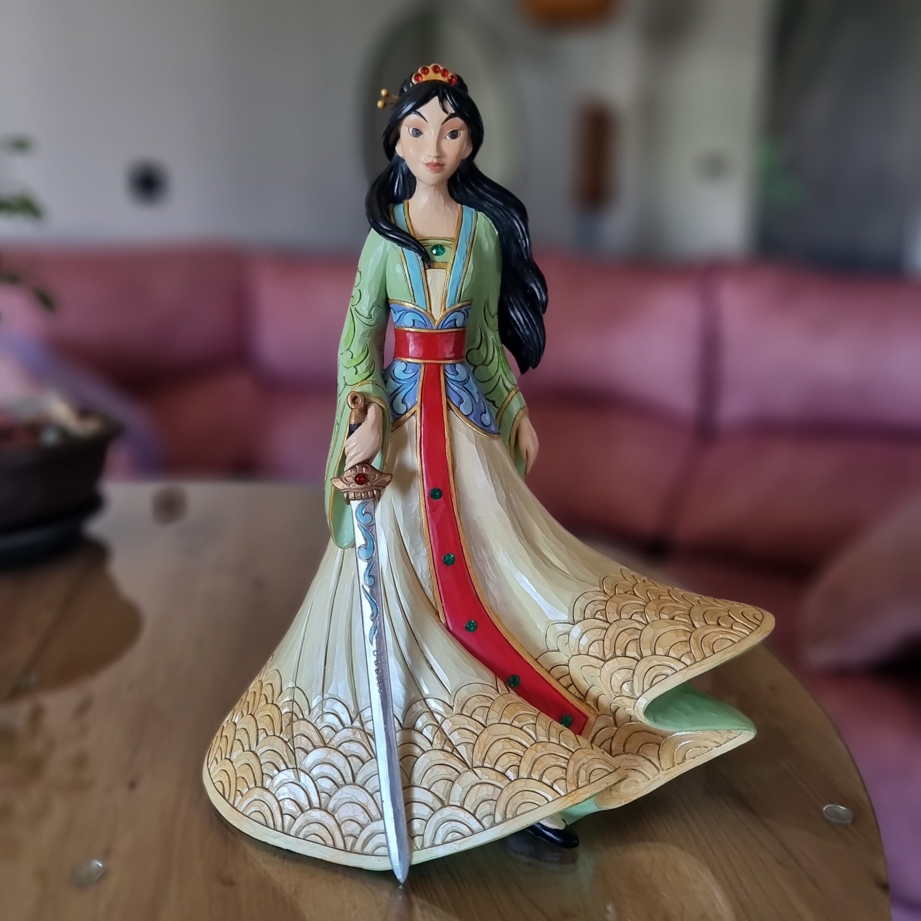 Cette figurine est grande est belle. Avec sa robe, ses cheveux aux vents et son épée, Mulan est magnifique.