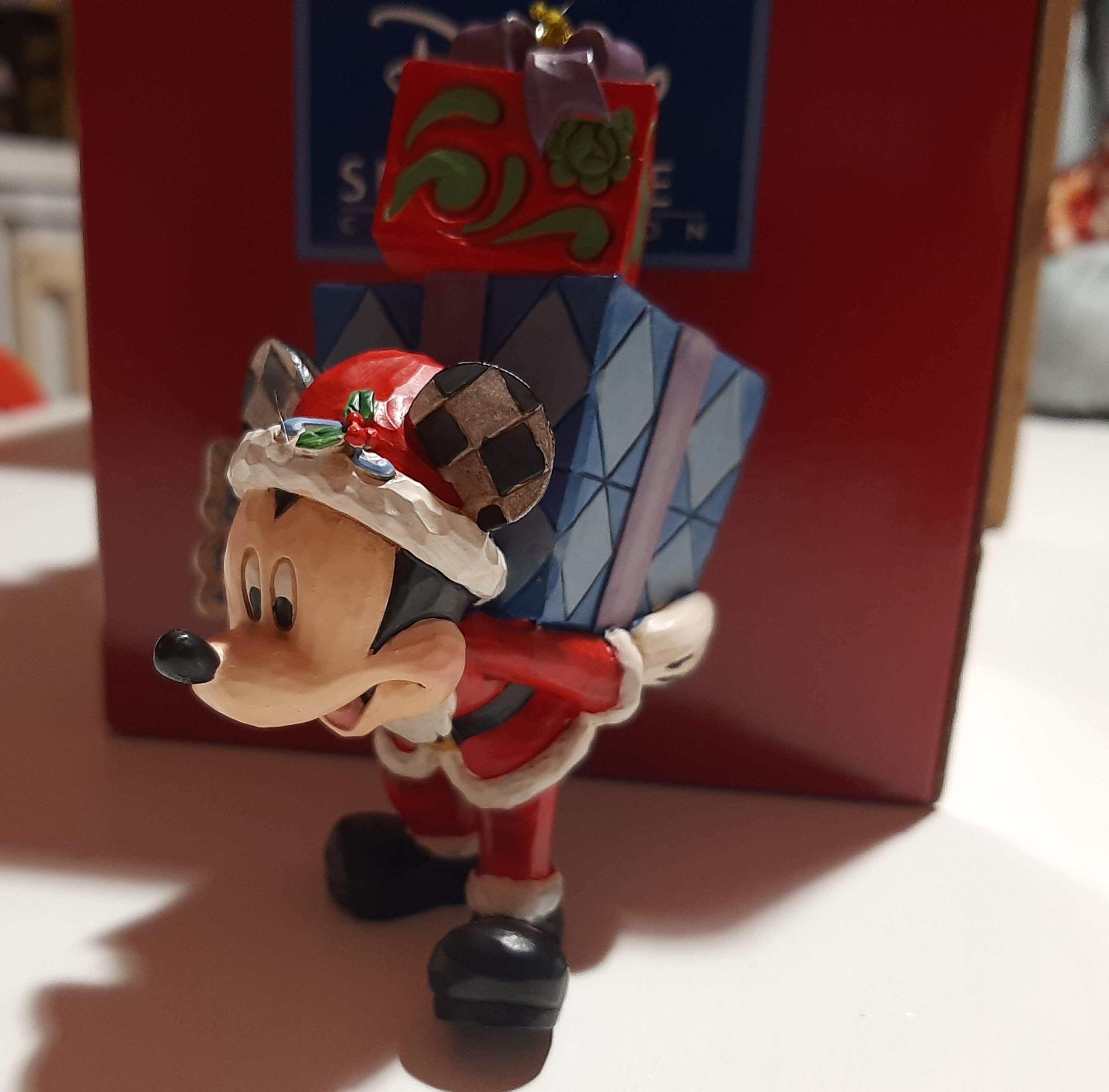 Ein wunderschöner Mickey Mouse mit Geschenken auf den Schultern zum Aufhängen am Weihnachtsbaum 🎄. Eine wirklich niedliche Dekoration.