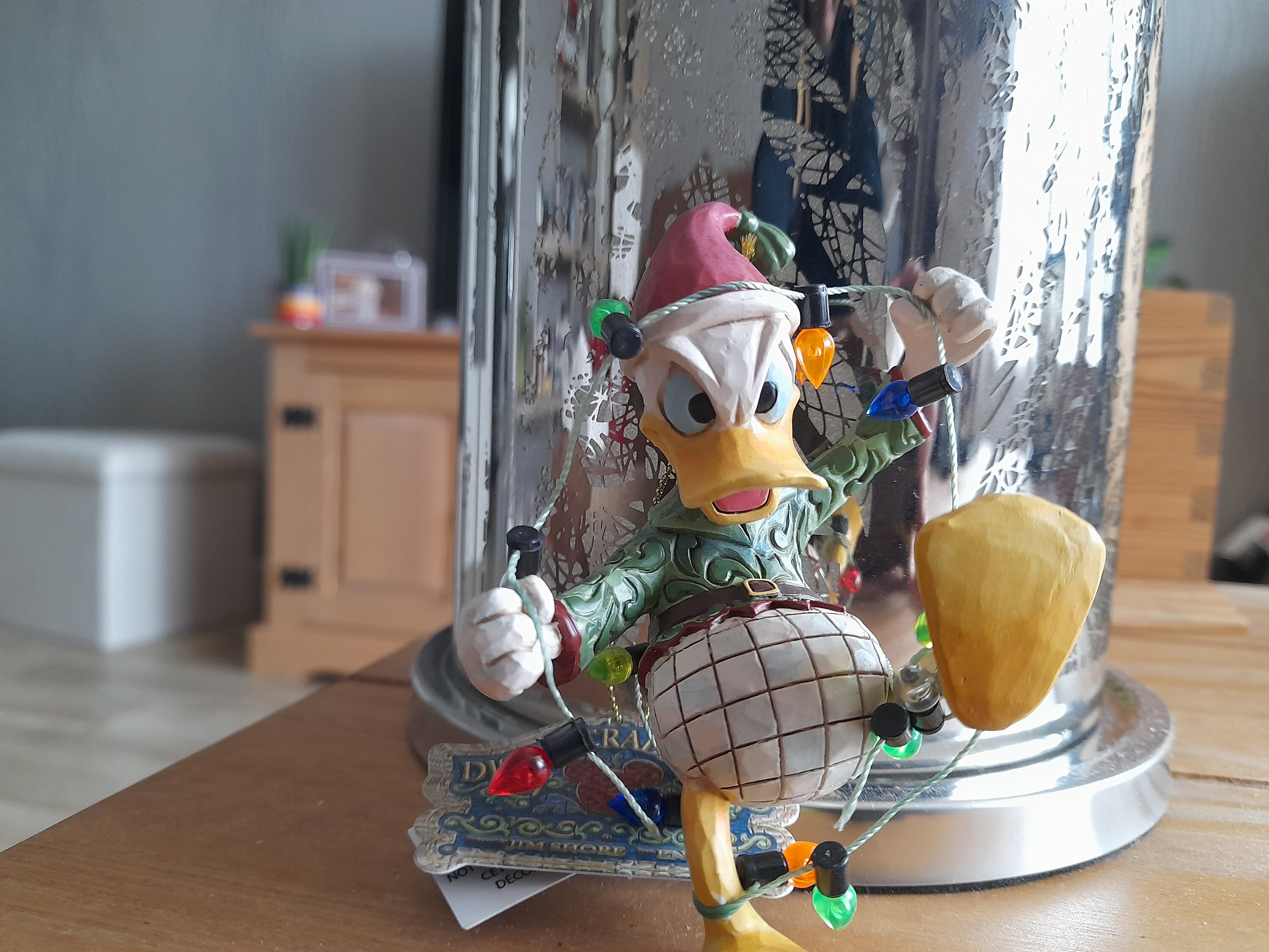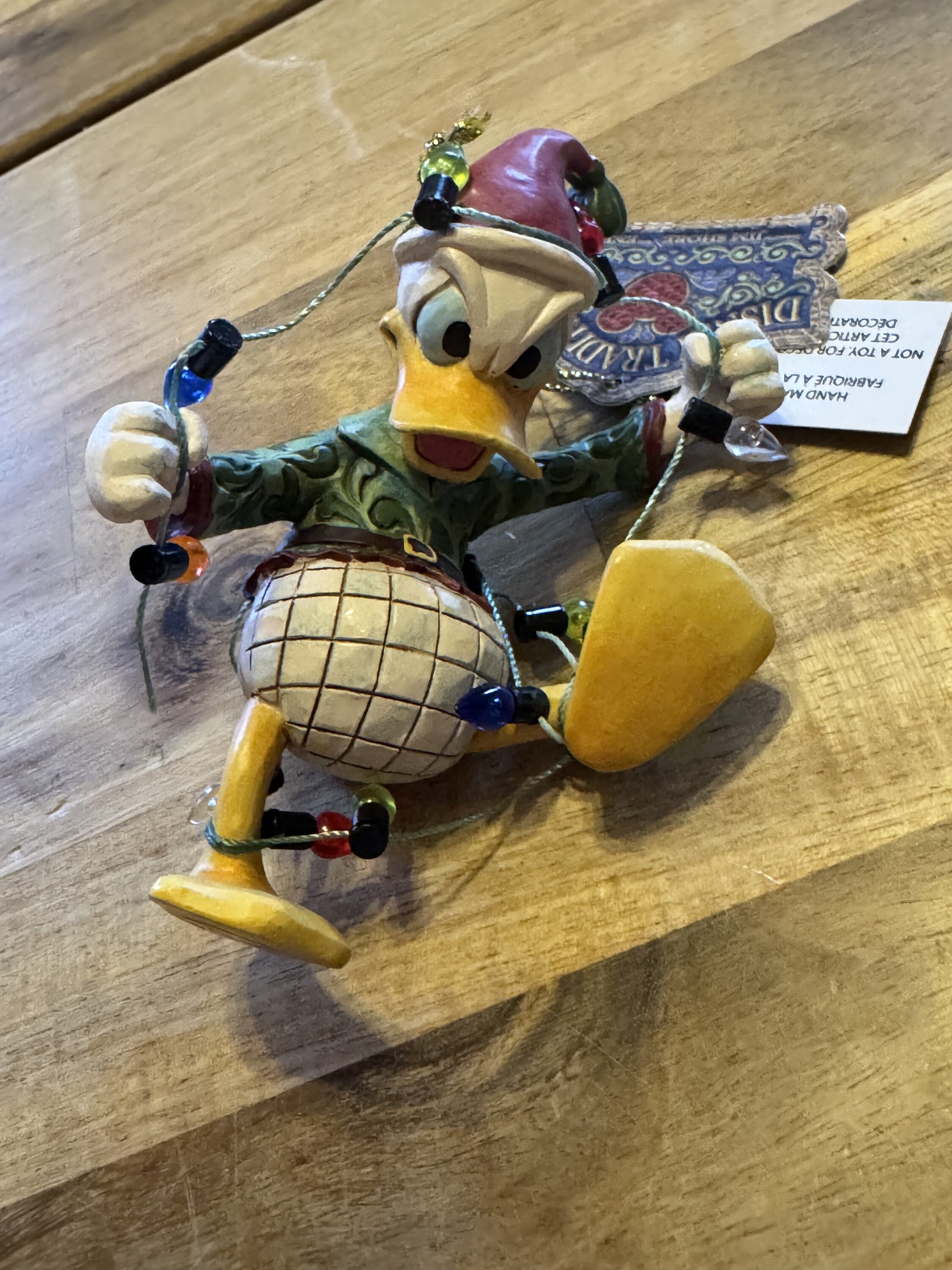 Eine wirklich niedliche Christbaumkugel, die Donald Duck zeigt, wie er versucht, sich aus den Lichterketten zu befreien. Wunderschön gearbeitet, wie immer. Sie wird meinen Weihnachtsbaum schmücken.