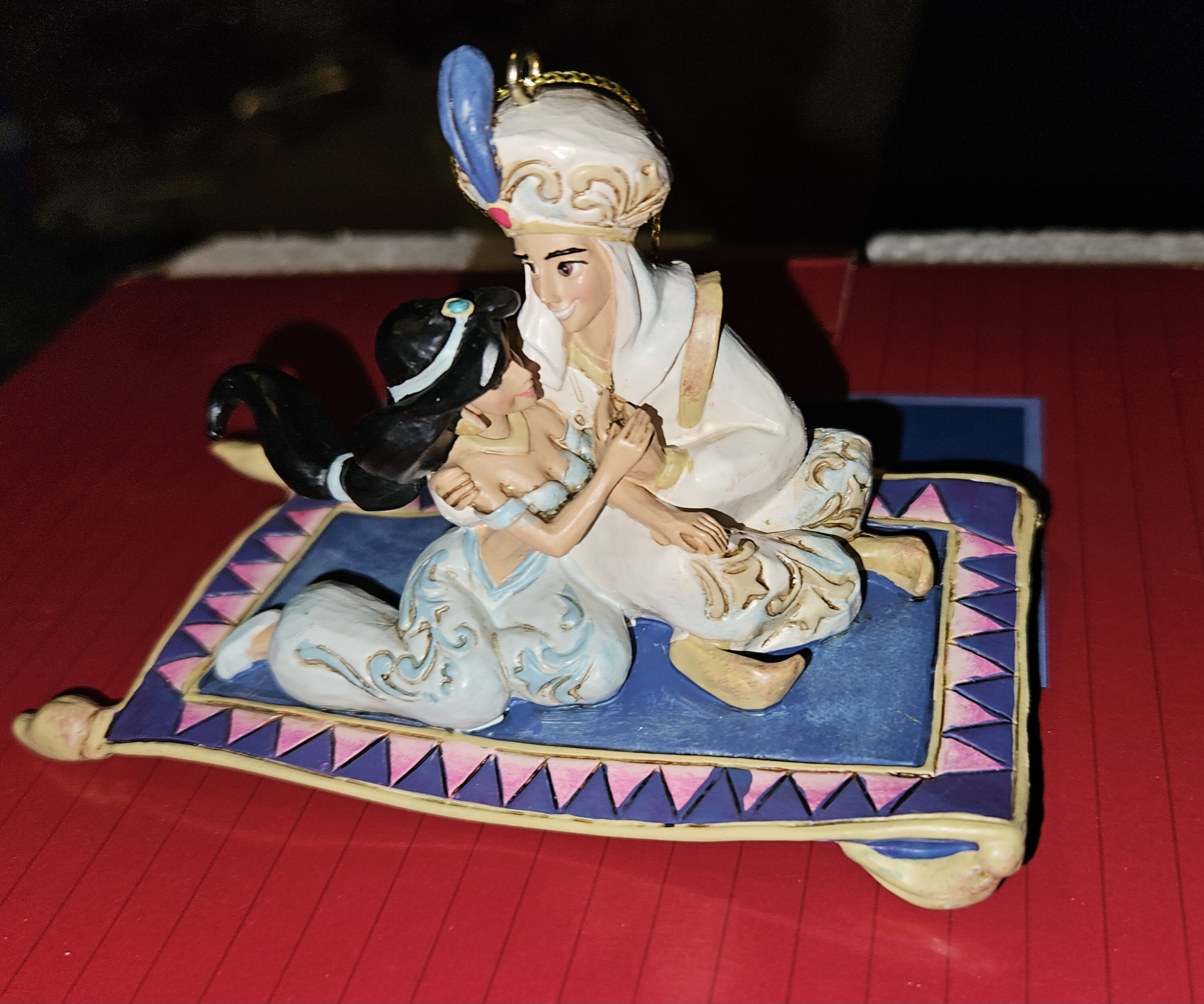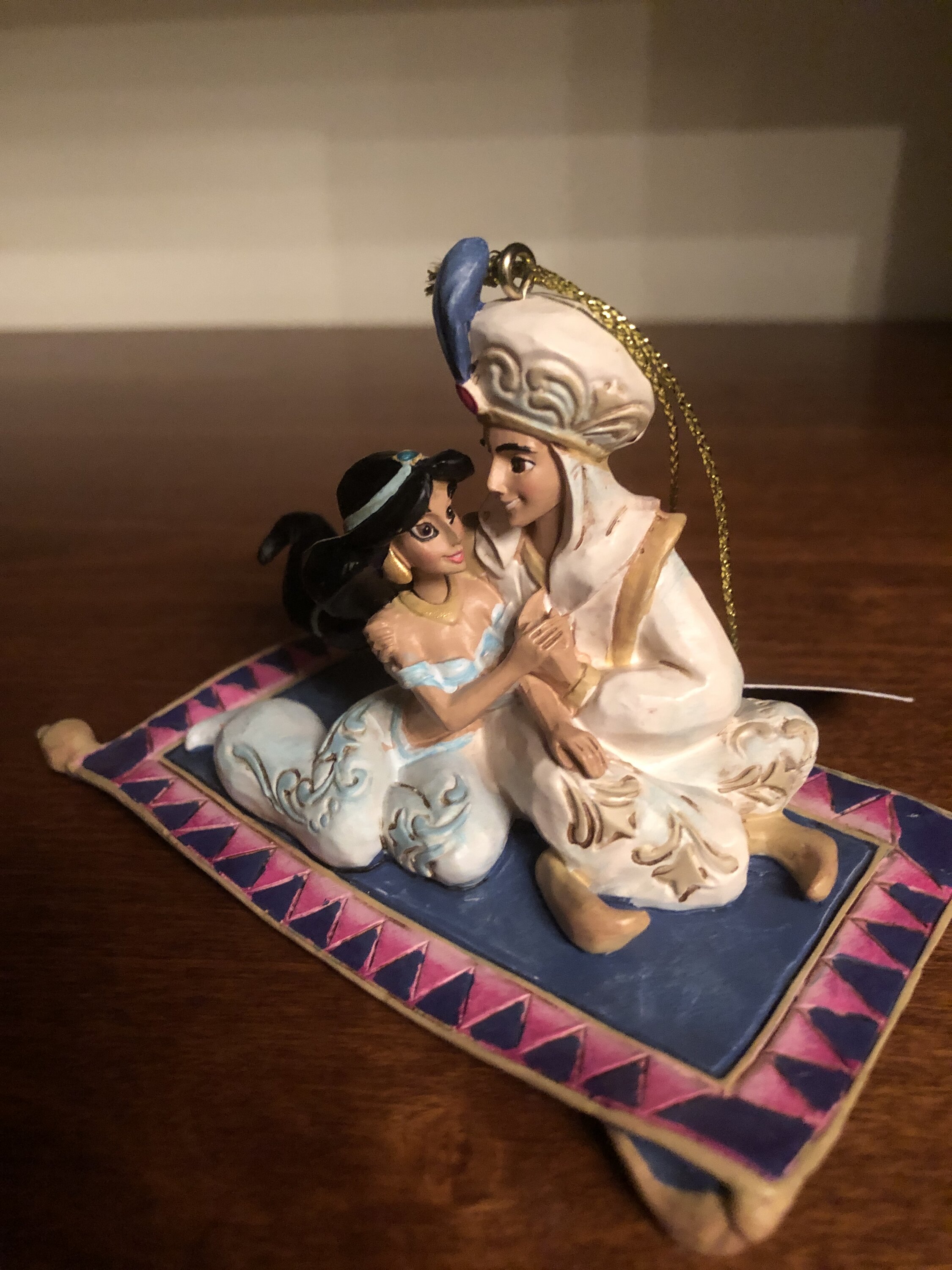 Anhänger mit Aladdin und Jasmin aus Jim Shores Disney Traditions Kollektion. Diese Figuren sind kein Spielzeug. Nur für Erwachsene.