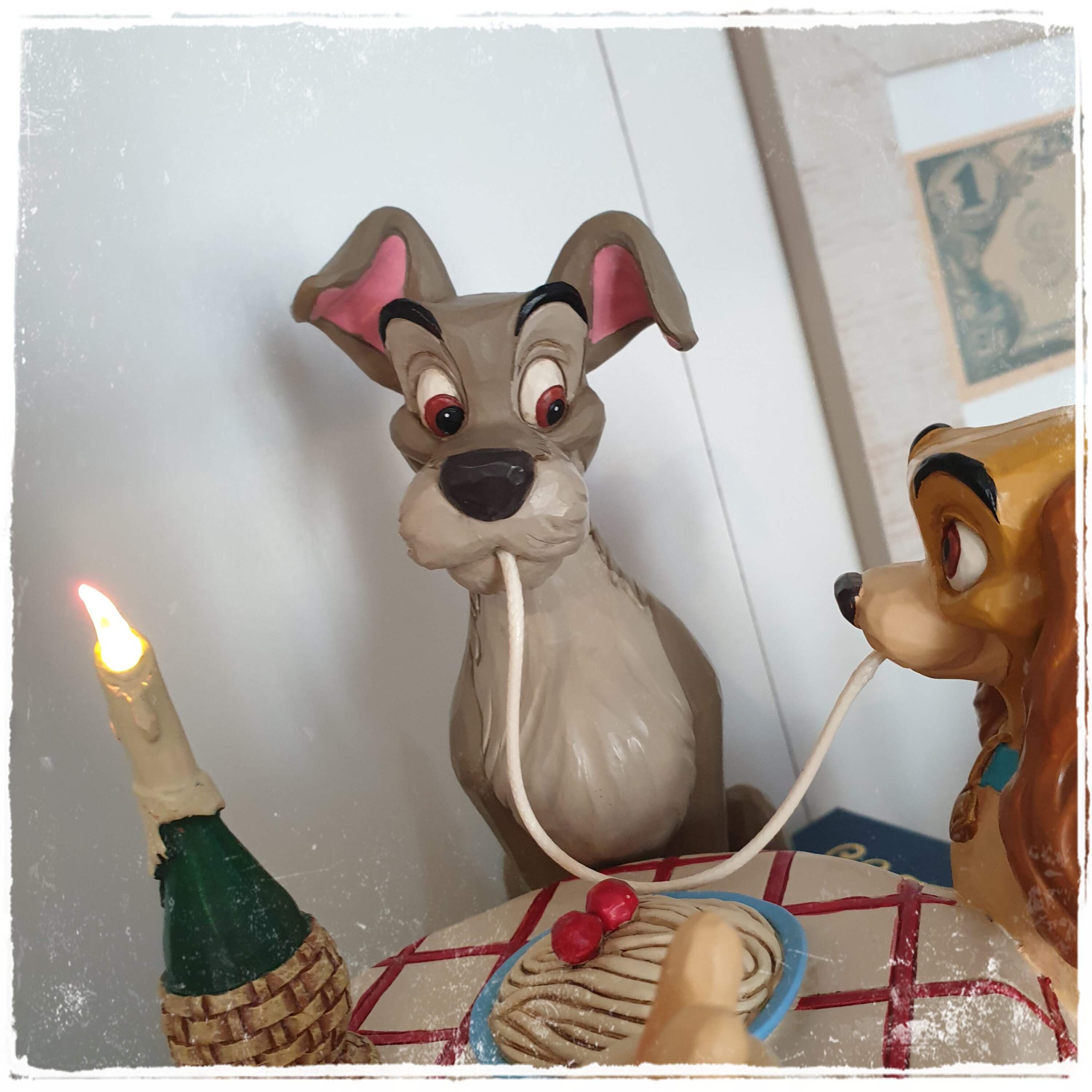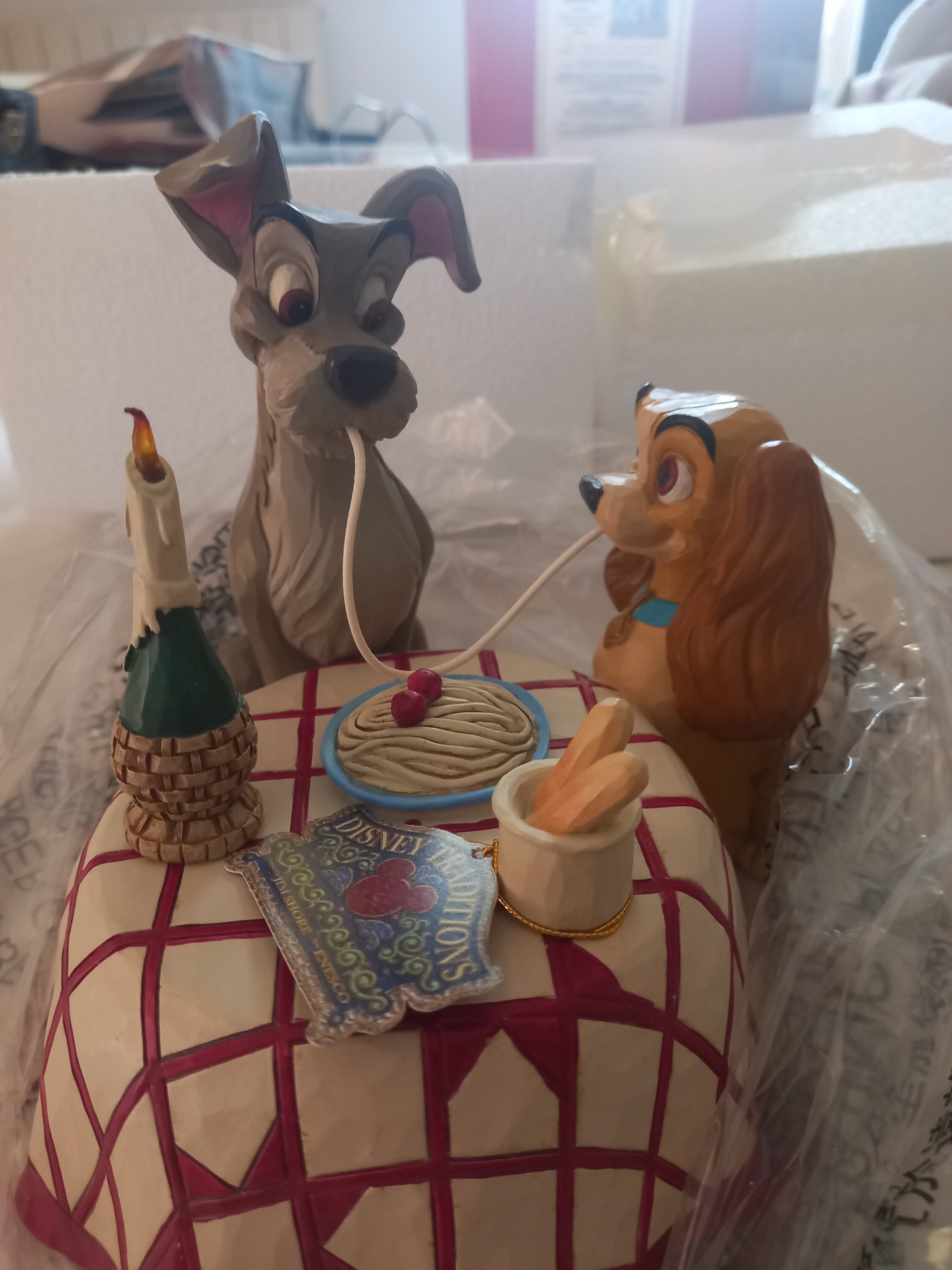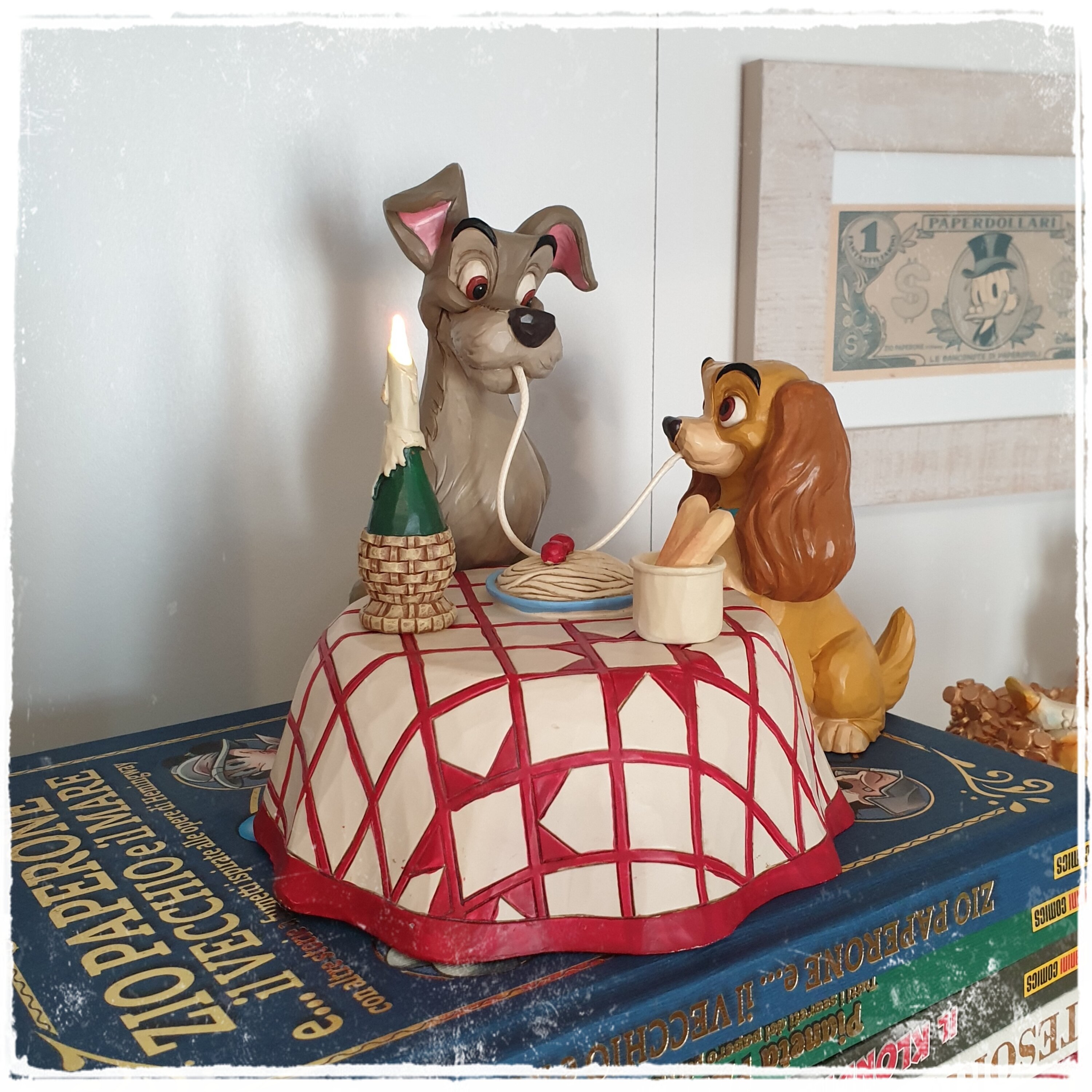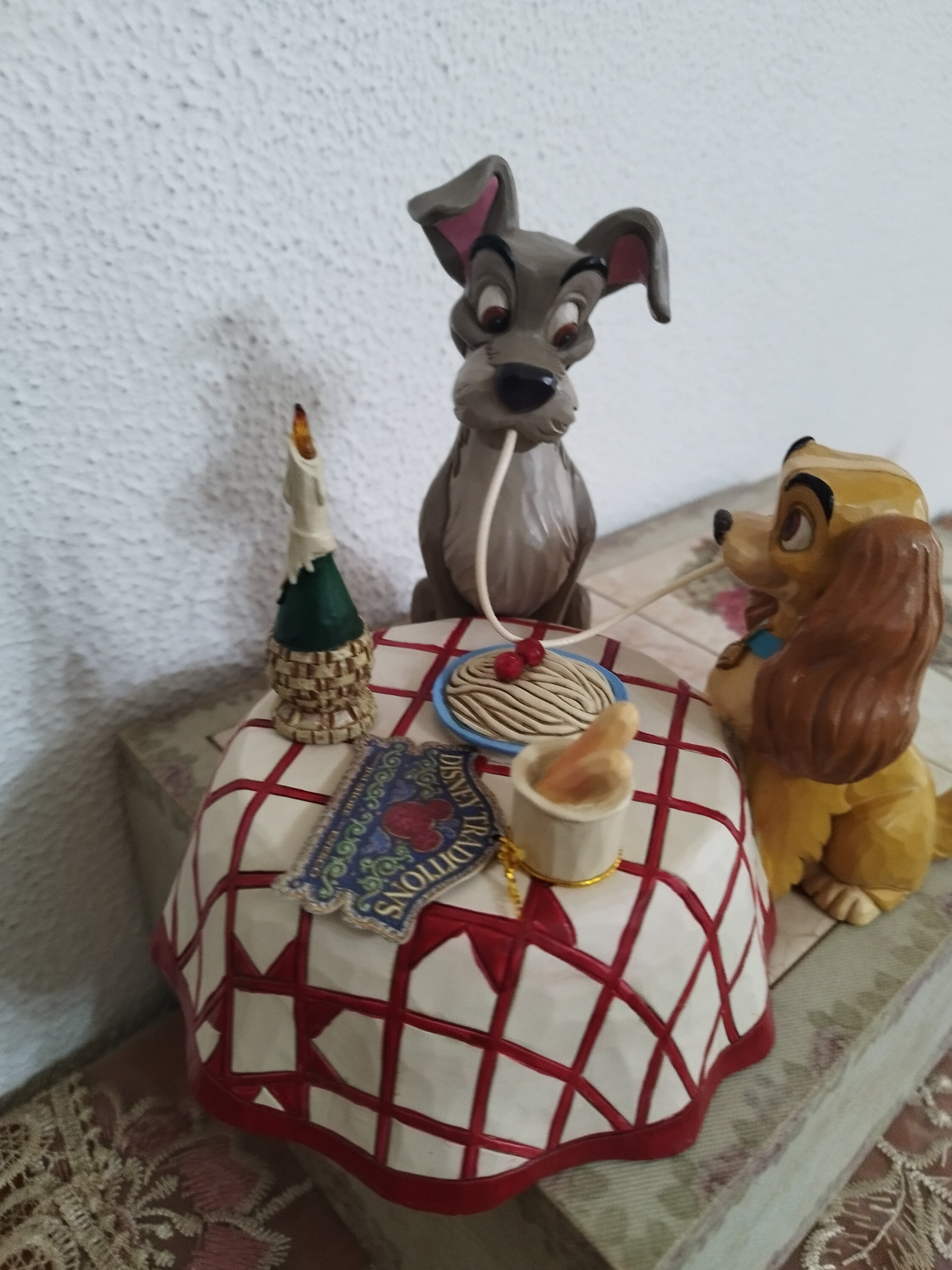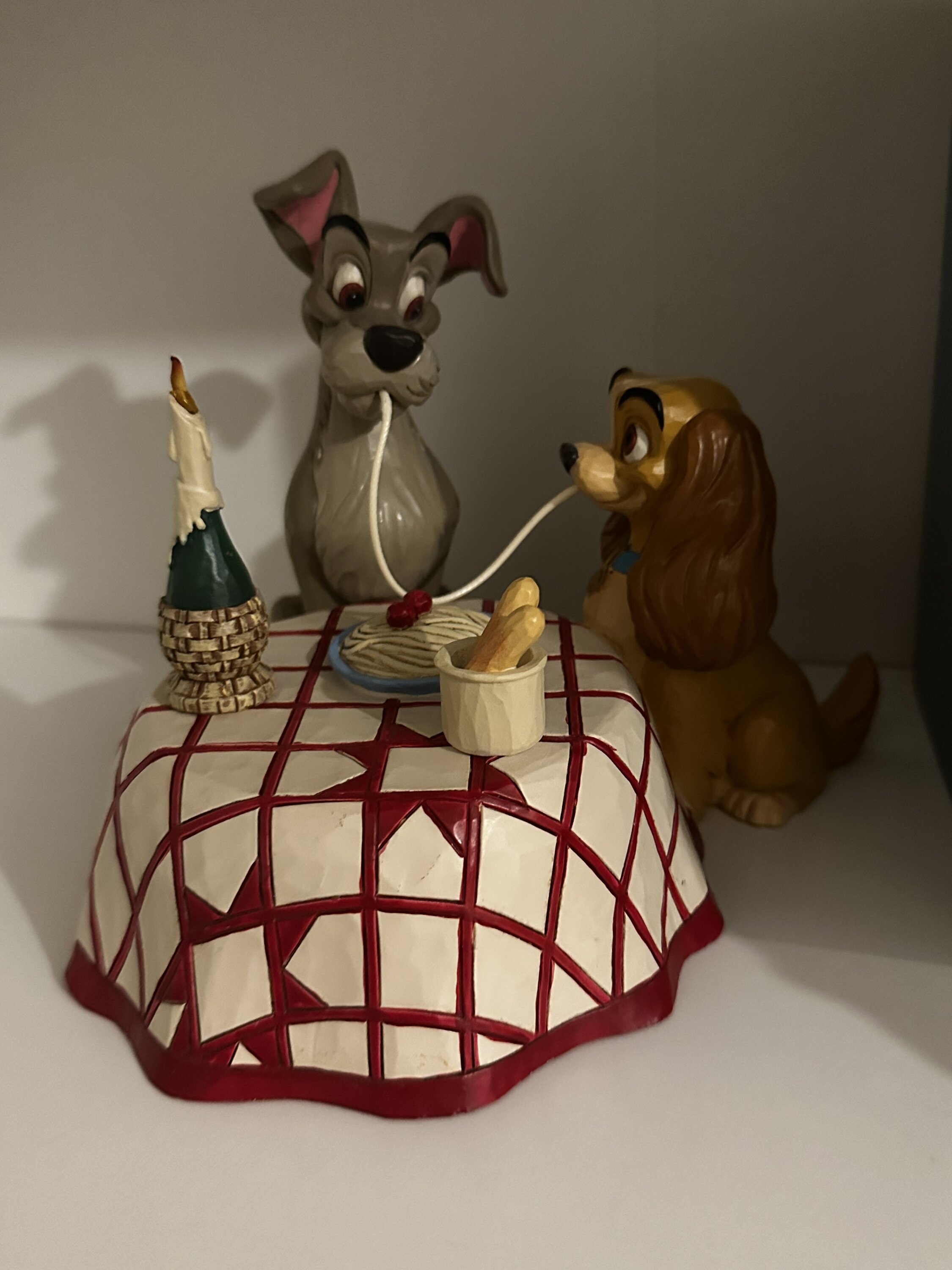Très belle figurine représentant la scène mythique du film La Belle et Clochard au restaurant italien ♥️. On adore.🥰