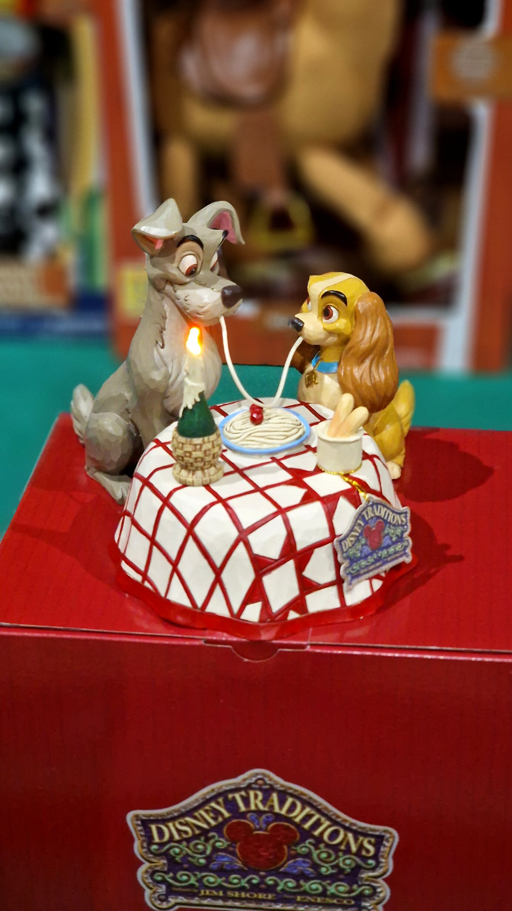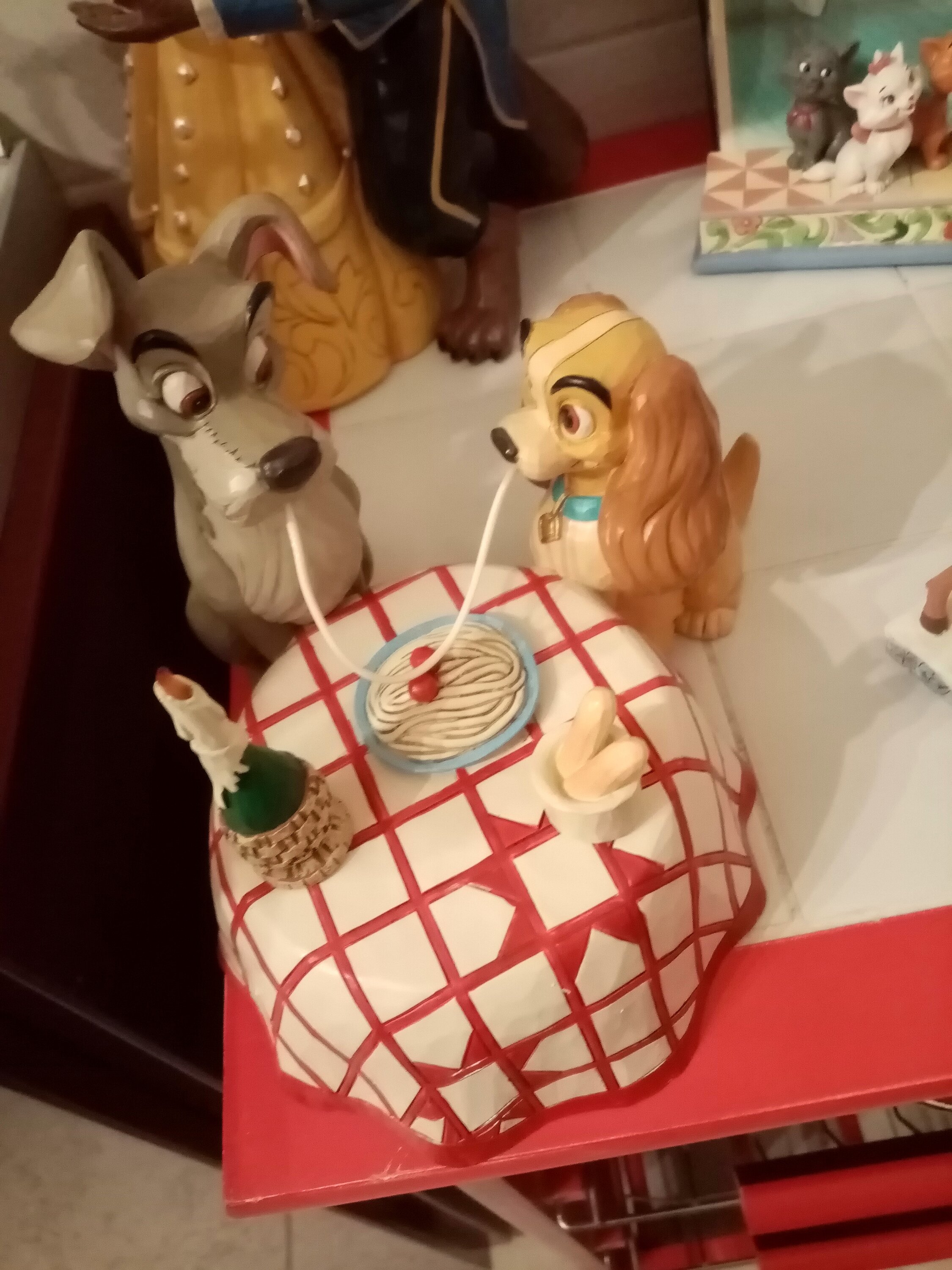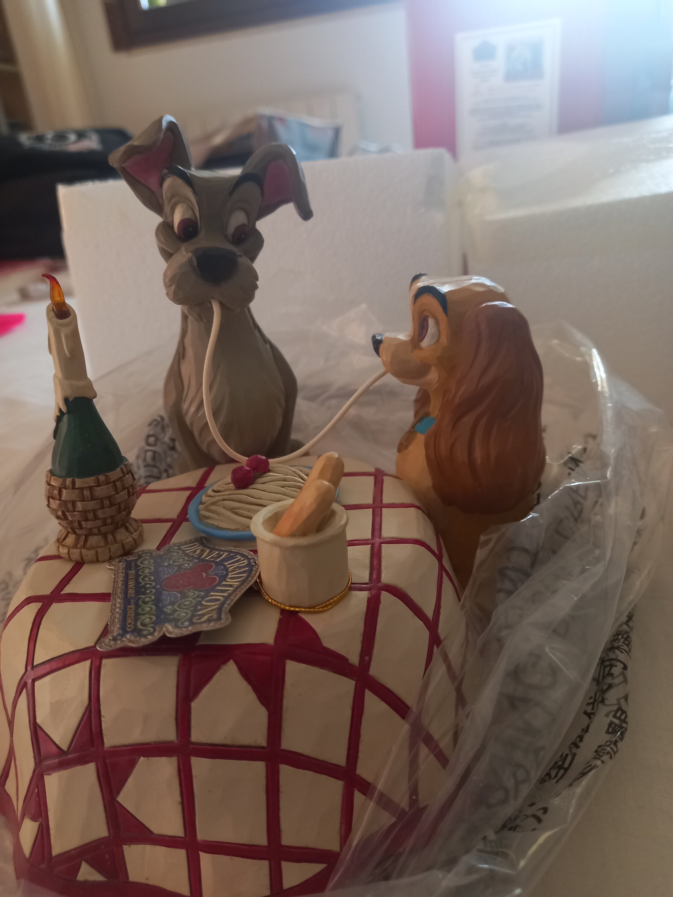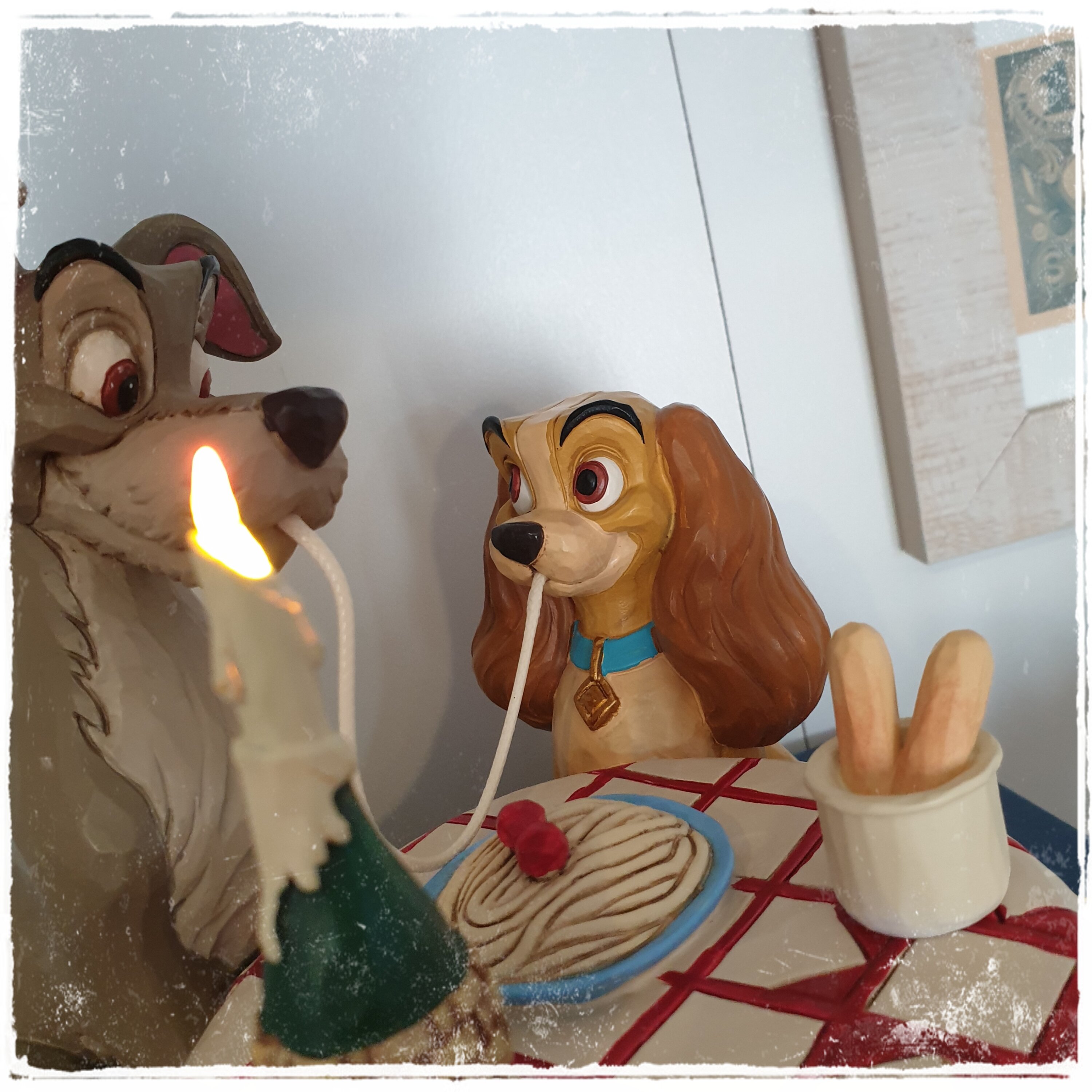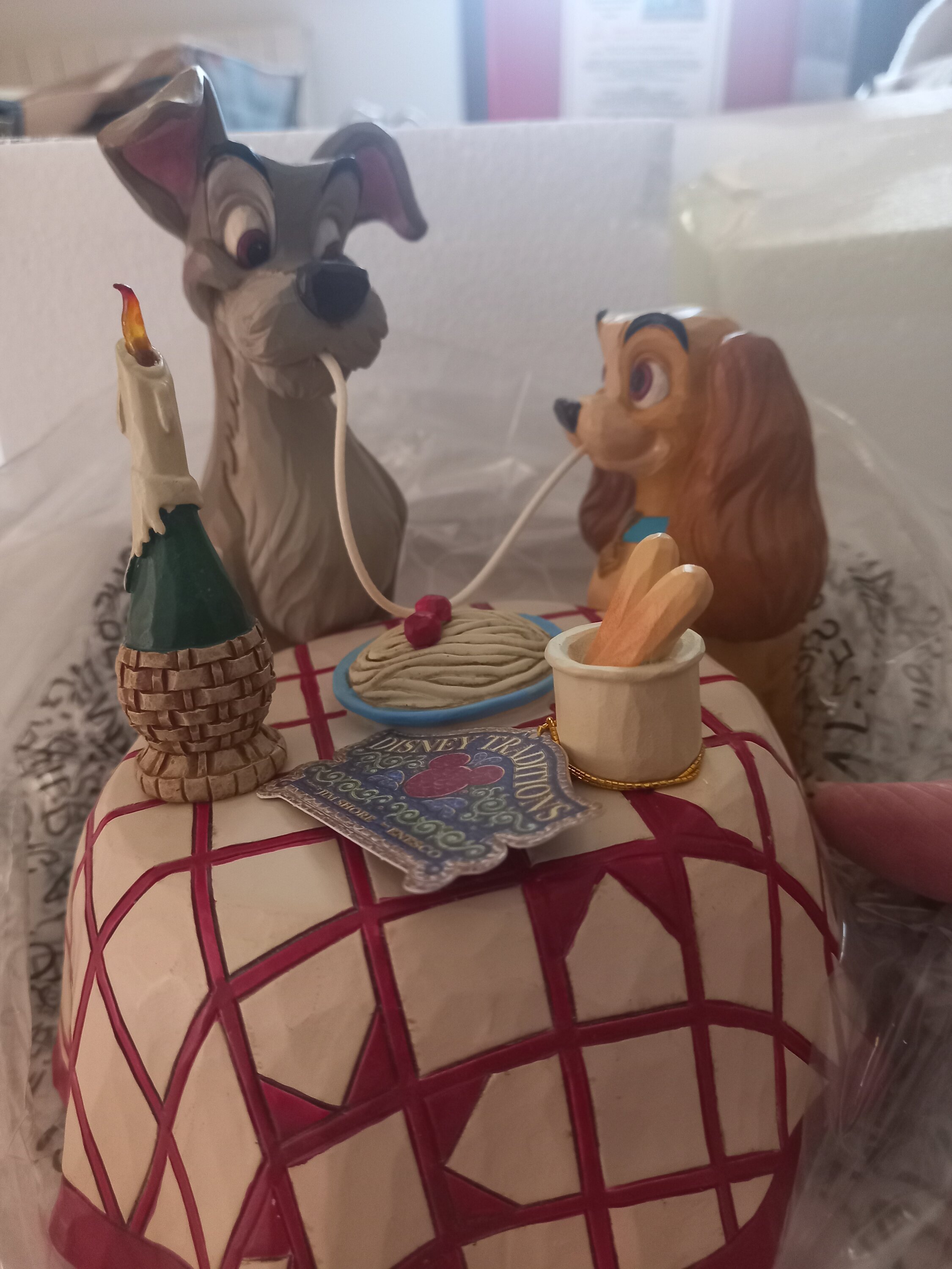 Très belle figurine représentant la scène mythique du film La Belle et Clochard au restaurant italien ♥️. On adore.🥰