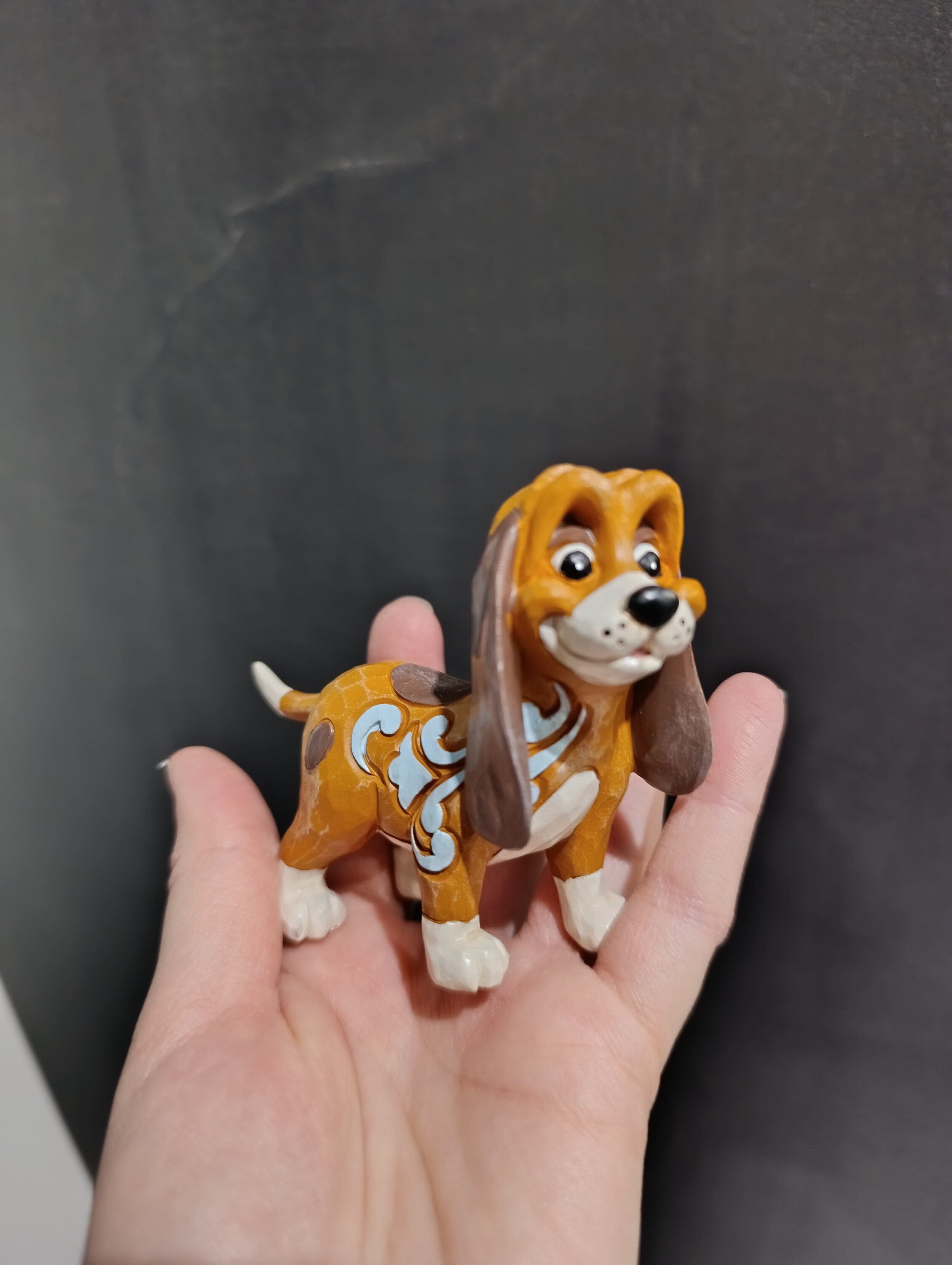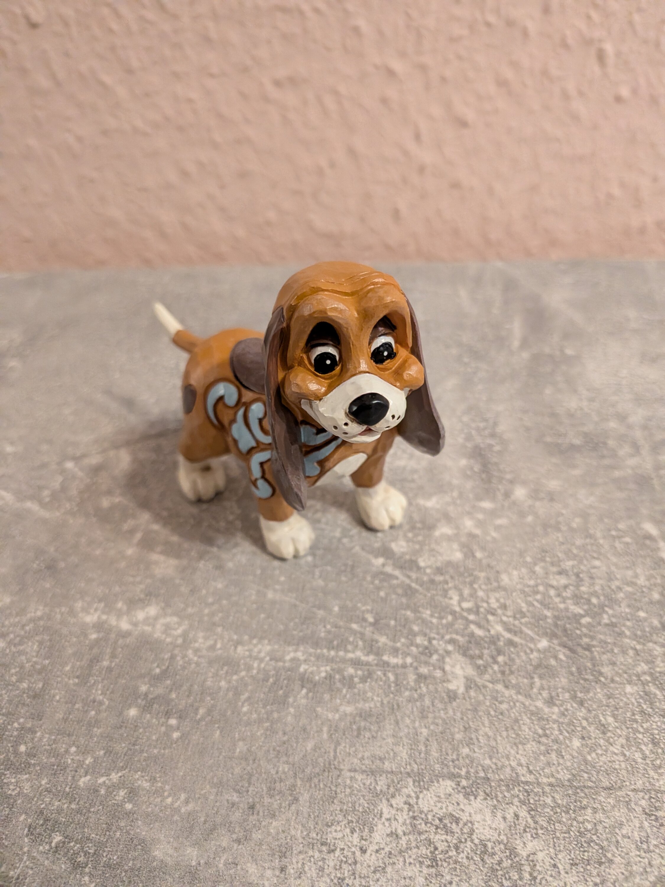 Diese süße Miniatur von Jim Shore zeigt Copper, den Jagdhund, mit aufwendigen Rosemaling-Mustern und einem herzlichen Gesichtsausdruck. Wahrscheinlich hält er Ausschau nach seinem Freund, dem Fuchs, und ist bereit für ihr nächstes gemeinsames Abenteuer im Wald.