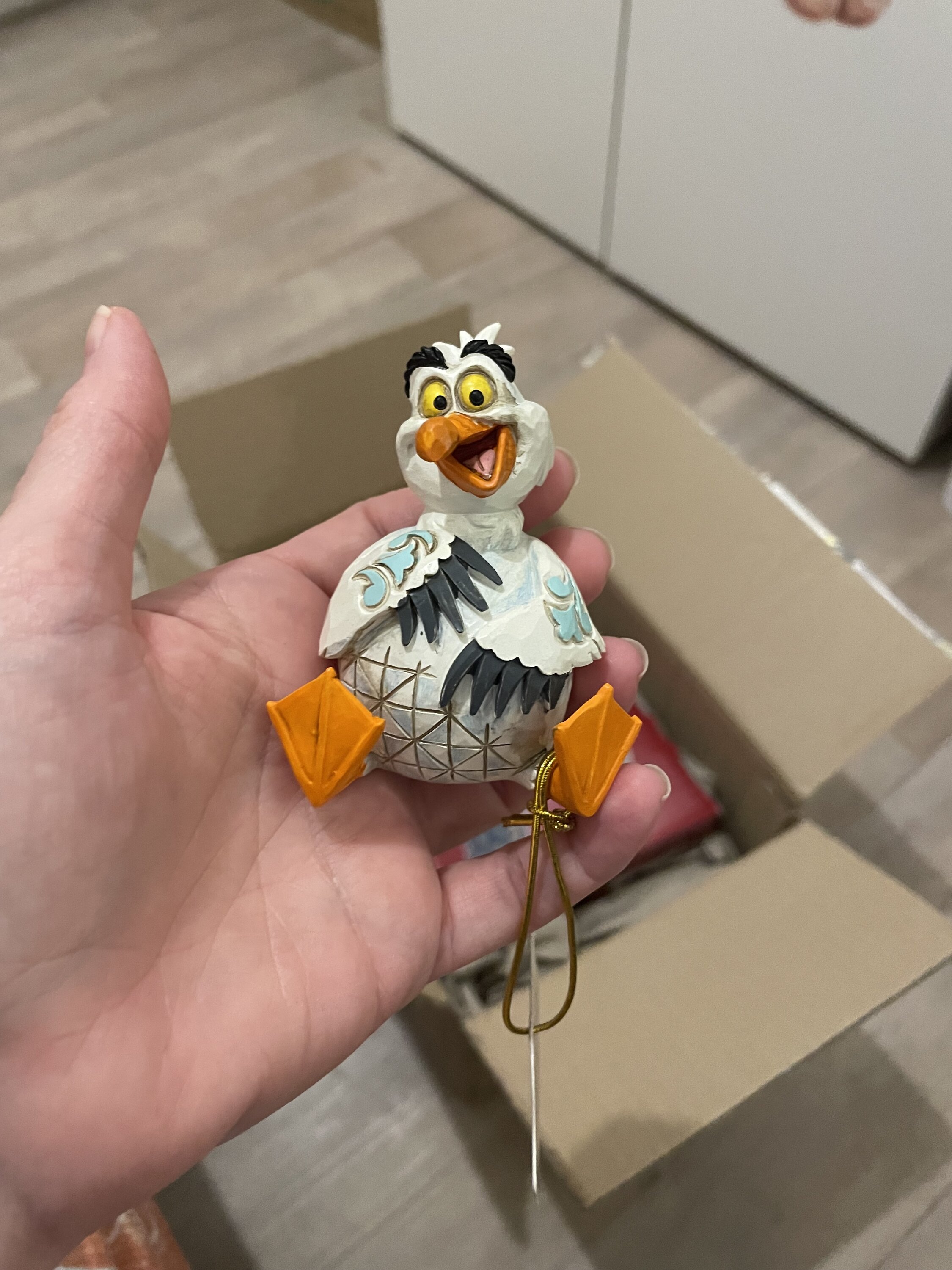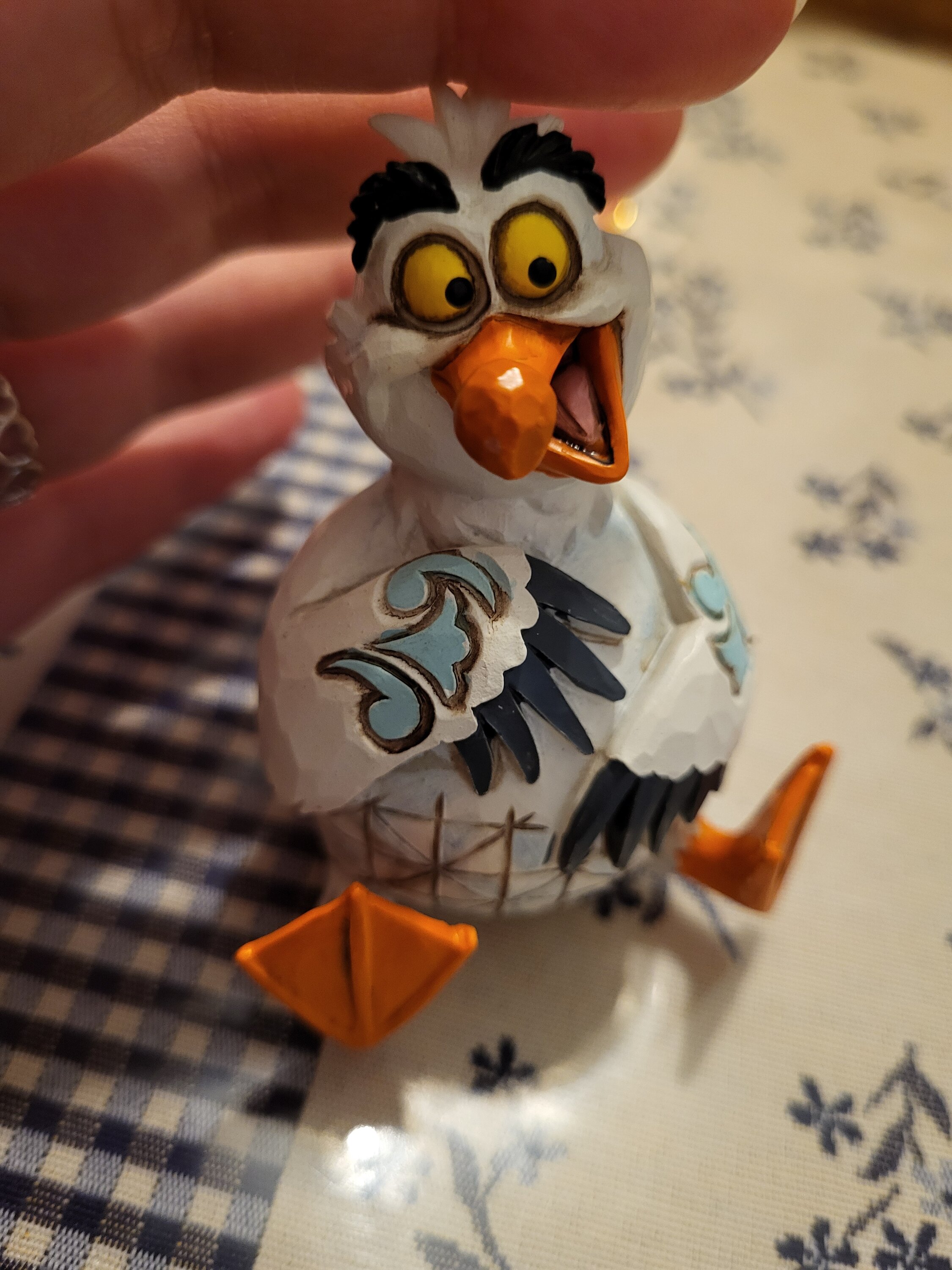 Diese Miniatur von Jim Shore zeigt Scuttle, die exzentrische Möwe aus „Die Kleine Meerjungfrau“ , mit lebendigem Rosemaling und charmanten Patchwork-Details. Mit einem strahlenden Lächeln und einem verspielten Gesichtsausdruck kann man sein fröhliches Lachen fast hören!