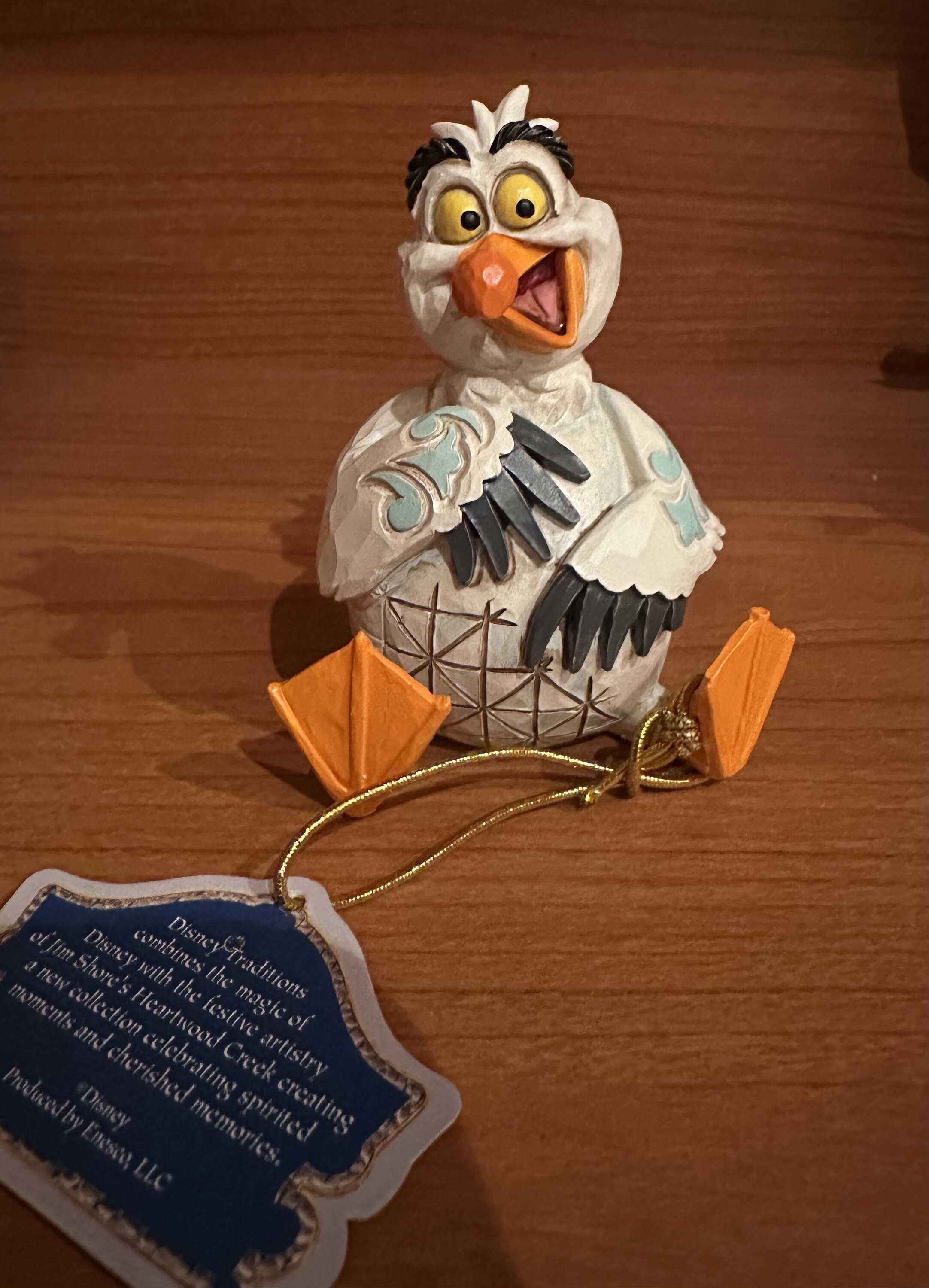 Attendevo con ansia una statuina di Scuttle realizzata da Jim Shore, perché era l'unico personaggio che mancava all'appello. E finalmente eccolo qui! Bellissimo!