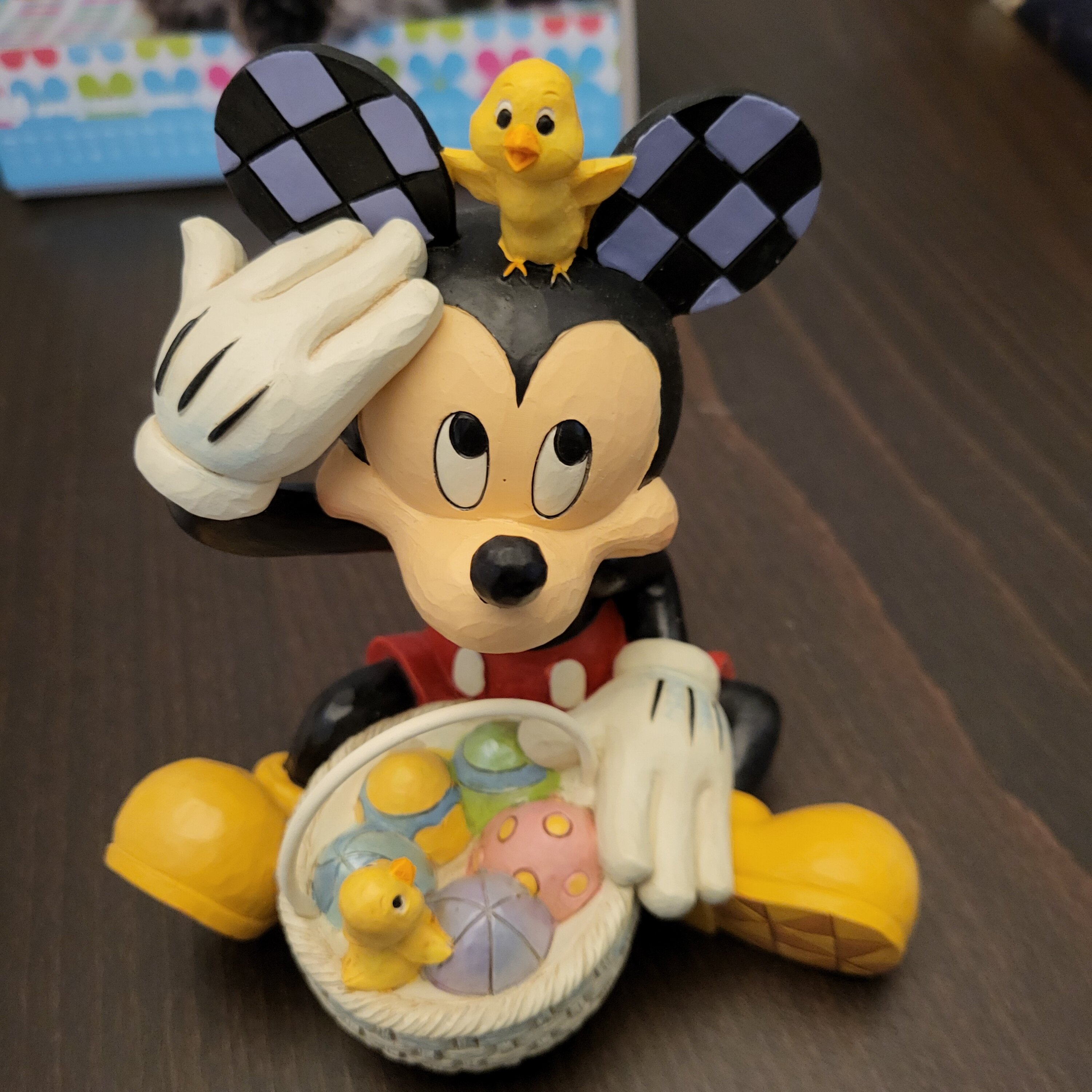 Diese Figur ist wunderschön und groß, ein sehr niedlicher Mickey Mouse mit seinem Küken. Herrliche Frühlingsfarben.