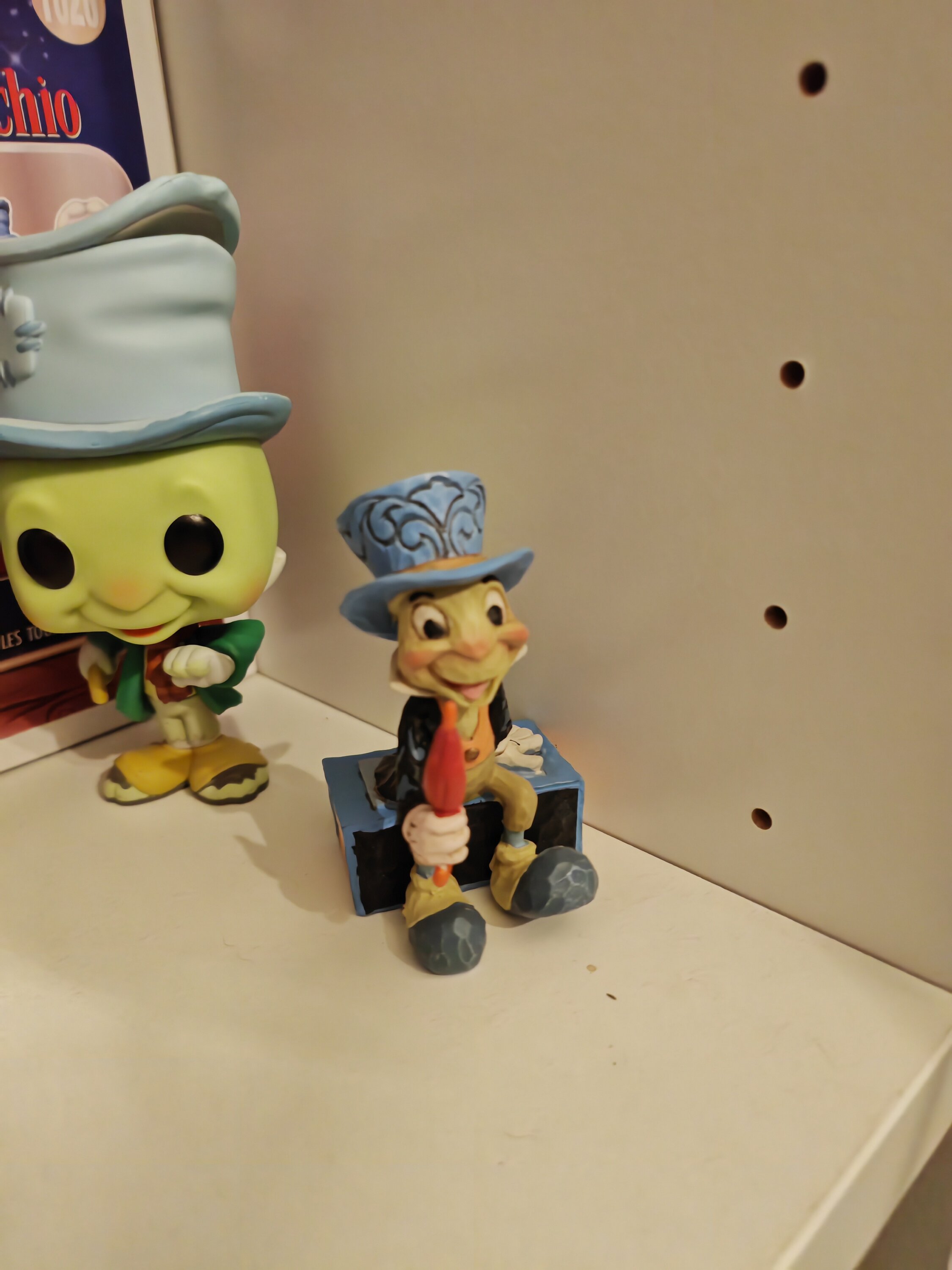 J'ai toujours aimé ce petit personnage de Pinocchio, le brave Jiminy Cricket. Cette figurine est super bien faite car il est tout mimi, tout joyeux assis sur sa boîte d'allumette et il rend super bien sur une étagère ou au pied d'une lampe.