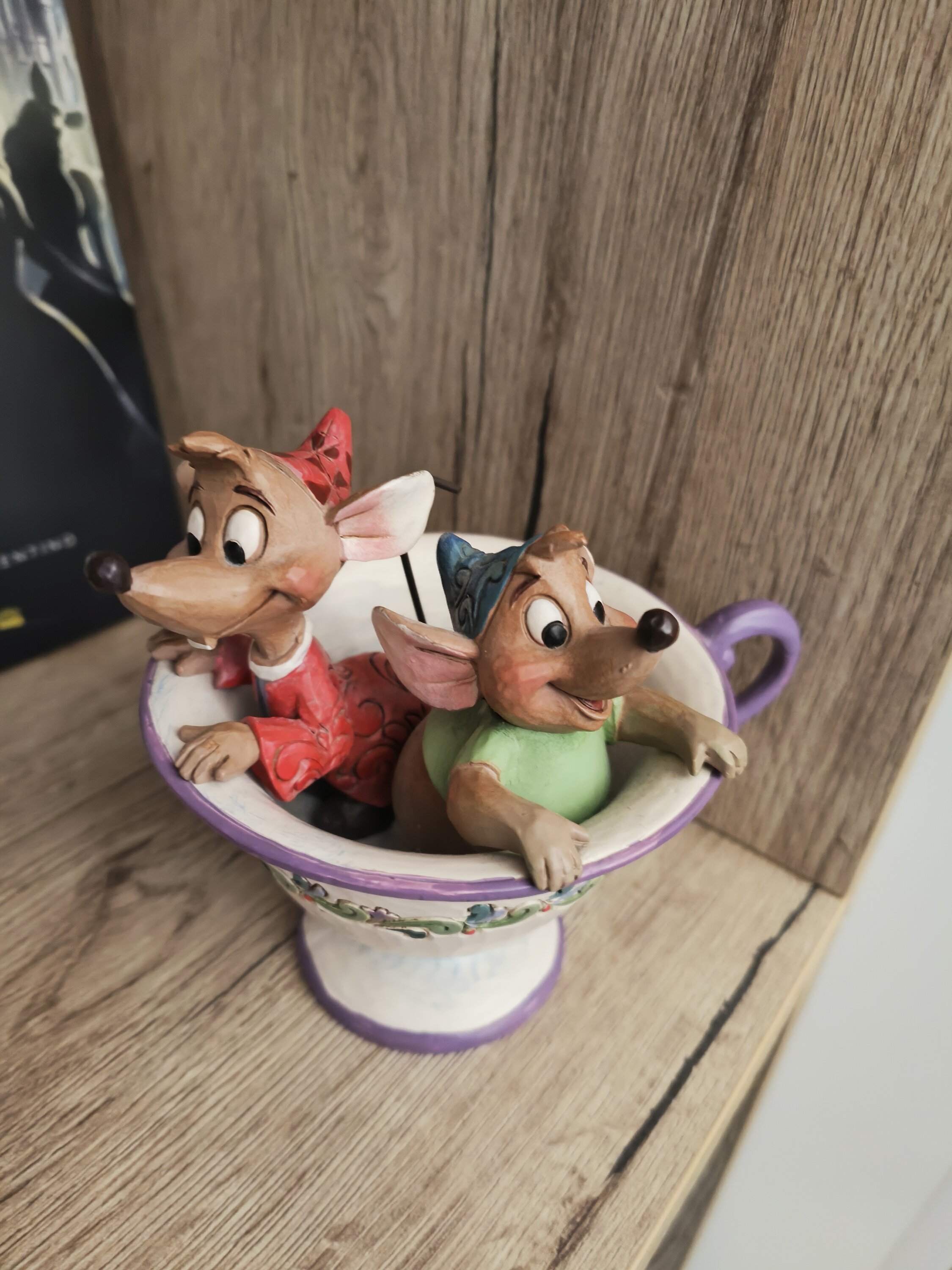 I topolini di Cenerentola sembrano essere davvero dentro una tazza di tè! Le dimensioni sono effettivamente quelle di una tazza. Non si può rimanere delusi da questo pezzo da collezione disegnata dallo scultore Jim Shore.