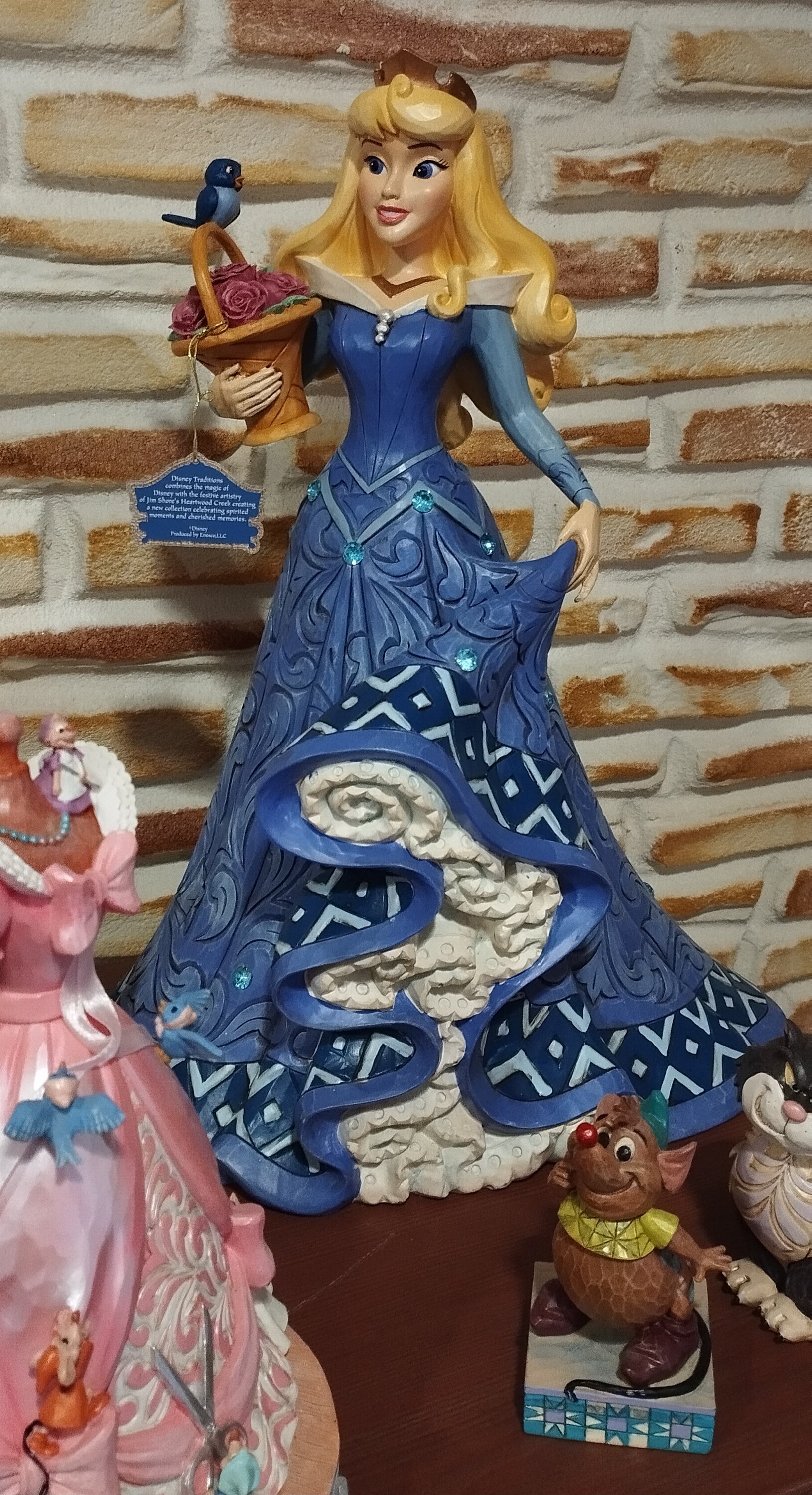 Eine Figur mit vielen Arabesken von Jim Shore auf dem ganzen Kleid. Ein Gesicht, das Aurore vollkommen treu ist, und Liebe zum Detail bis hin zum Korb und dem Vogel!