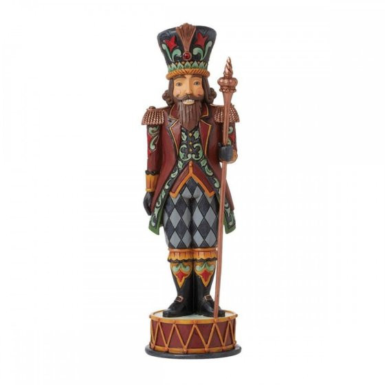 Mit einem breiten Lächeln steht dieser rot-grüne Spielzeugsoldat auf einer Trommel mit einem goldenen Stab. Mit aufwendigen Rosemaling-Details trägt dieser Spielzeugsoldat eine königliche Wachuniform und einen beeindruckenden juwelenbesetzten Hut. Diese Jim Shore -Figur beeindruckt mit festlichem Flair.