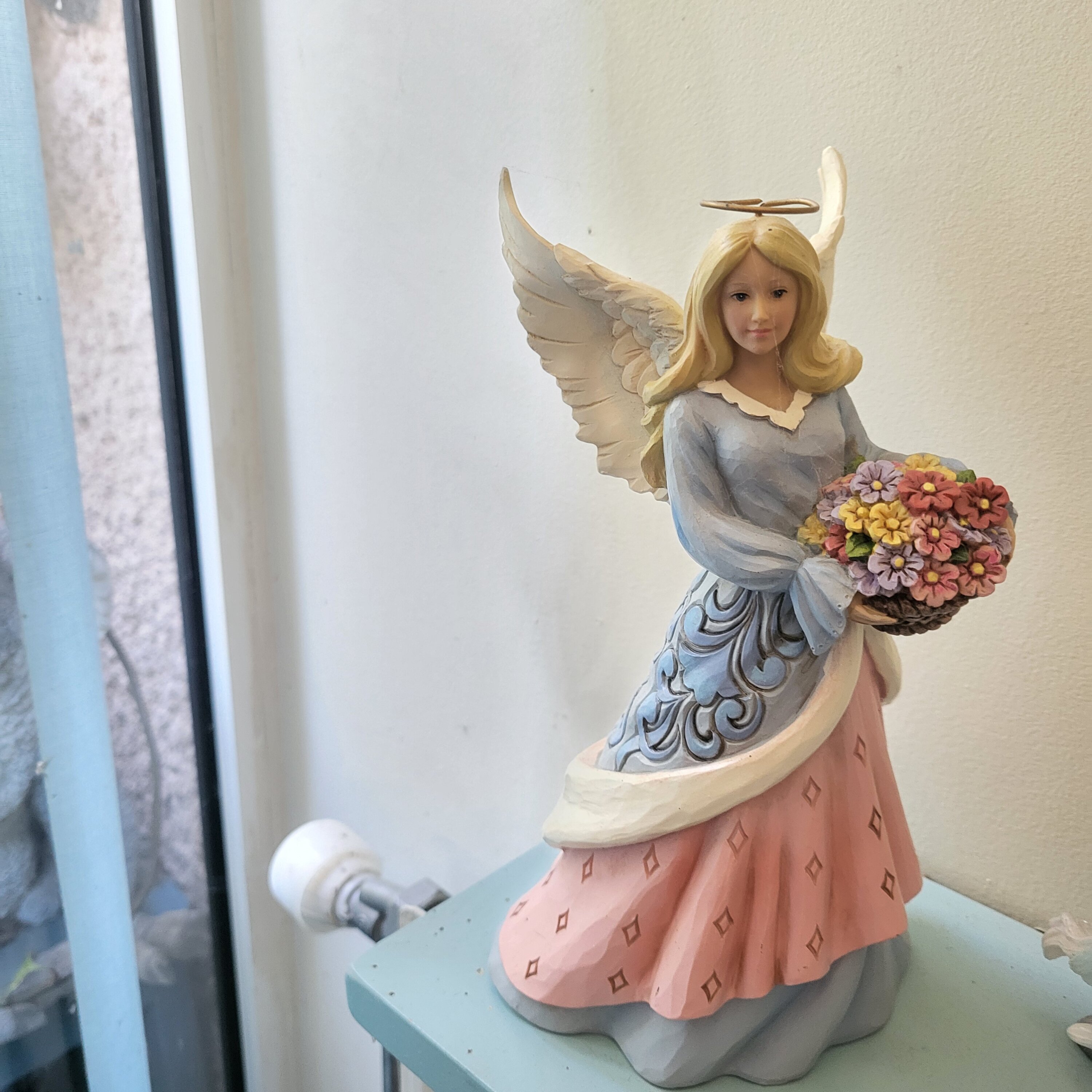 Magnifique ange avec son panier ,jolie visage, de taille moyenne de belles couleurs pastelles , ,je le recommande