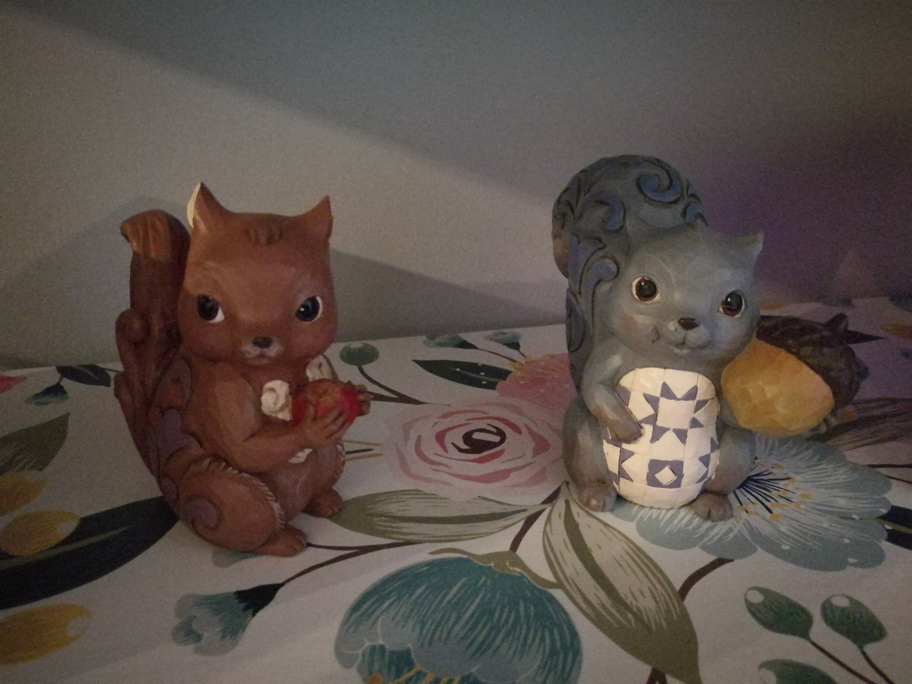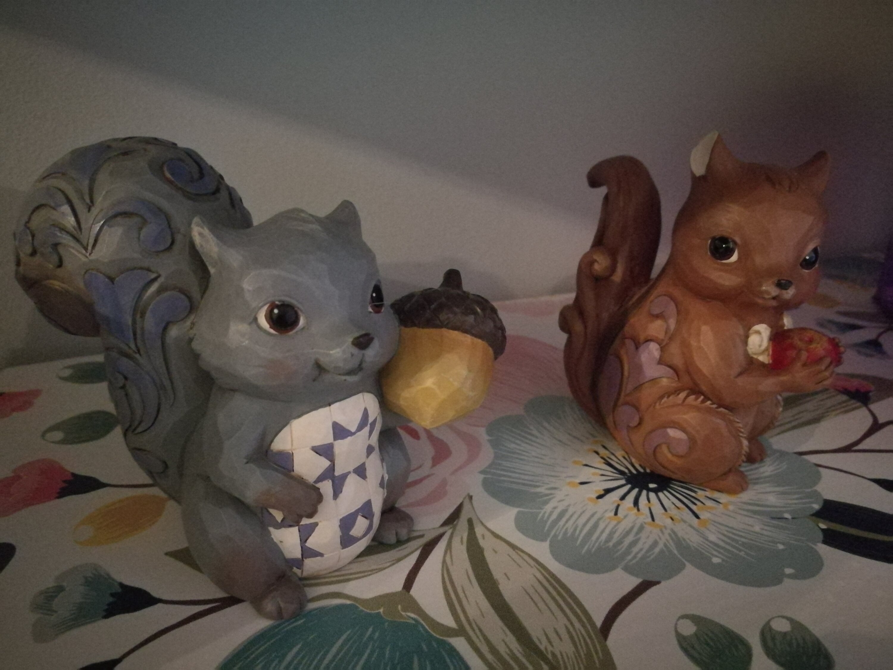 Dieses kleine graue Eichhörnchen und sein Gefährte passen perfekt zusammen. Es sieht sogar so aus, als würden sie uns beobachten.