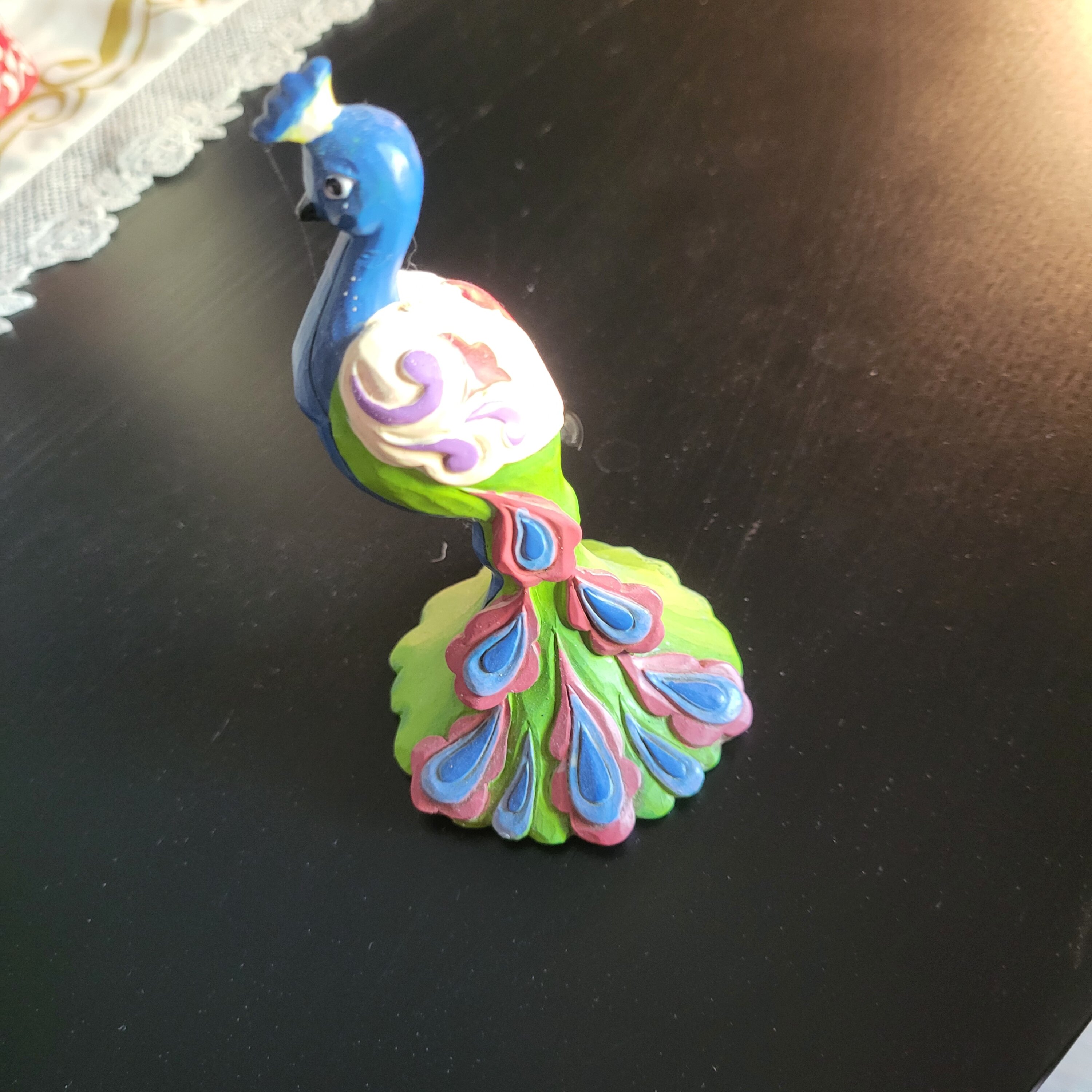 Wunderschön verzierte Mini-Pfauenfigur aus der Heartwood Creek Kollektion, entworfen vom preisgekrönten Künstler und Bildhauer Jim Shore. Jede Figur ist handbemalt, leichte Farbabweichungen sind daher möglich, was jedes Stück einzigartig macht. Verpackt in einer Geschenkbox. Diese Artikel sind kein Kinderspielzeug. Nur für Erwachsene bestimmt. Höhe: 9,5 cm