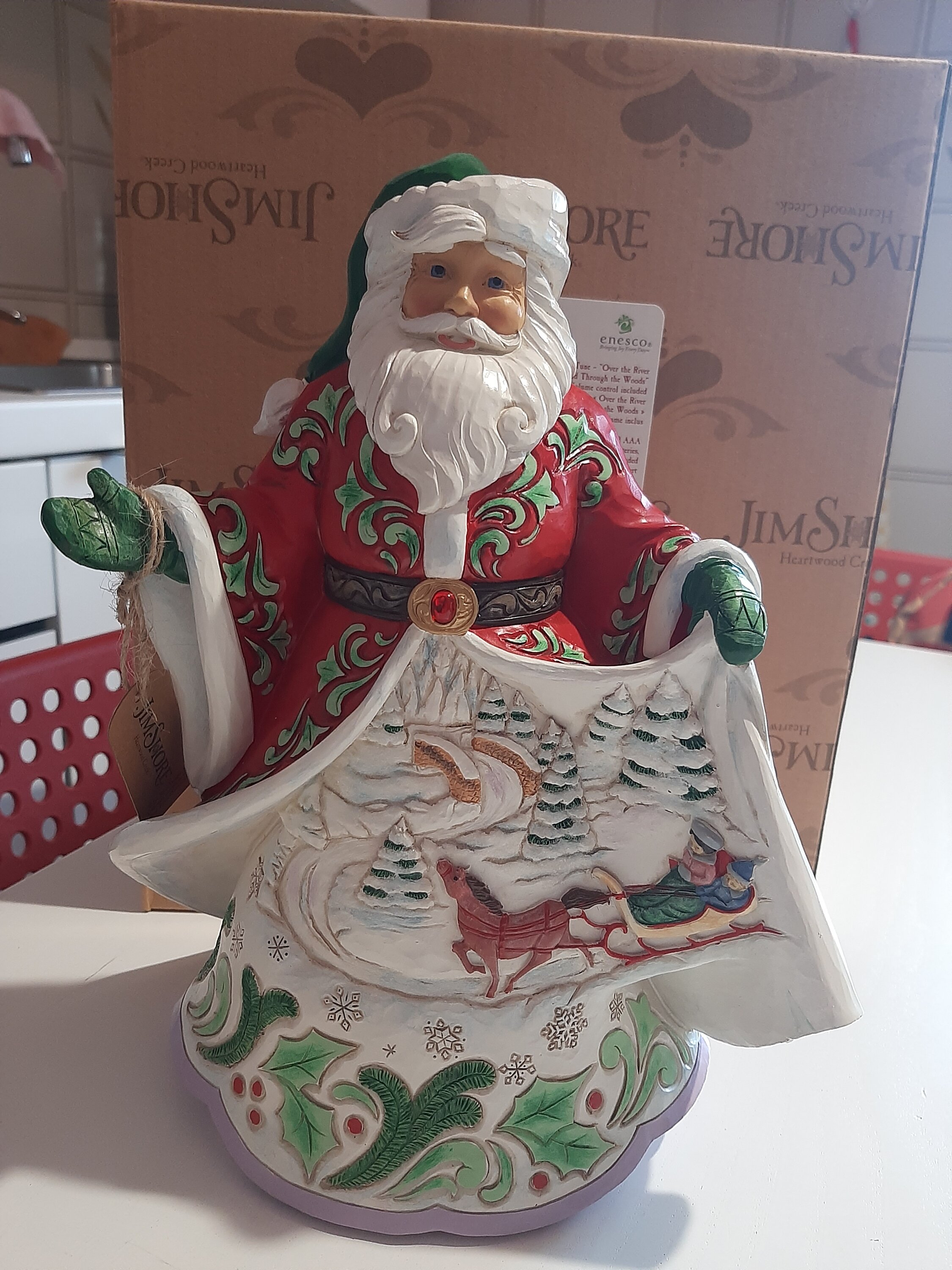 Bellissimo questo Babbo Natale con la scena invernale di Jim Shore ❄⛄❄!!! Un pezzo da collezione veramente stupendo🥰. Qualità ed efficienza sempre con la Città del regalo 🎁.