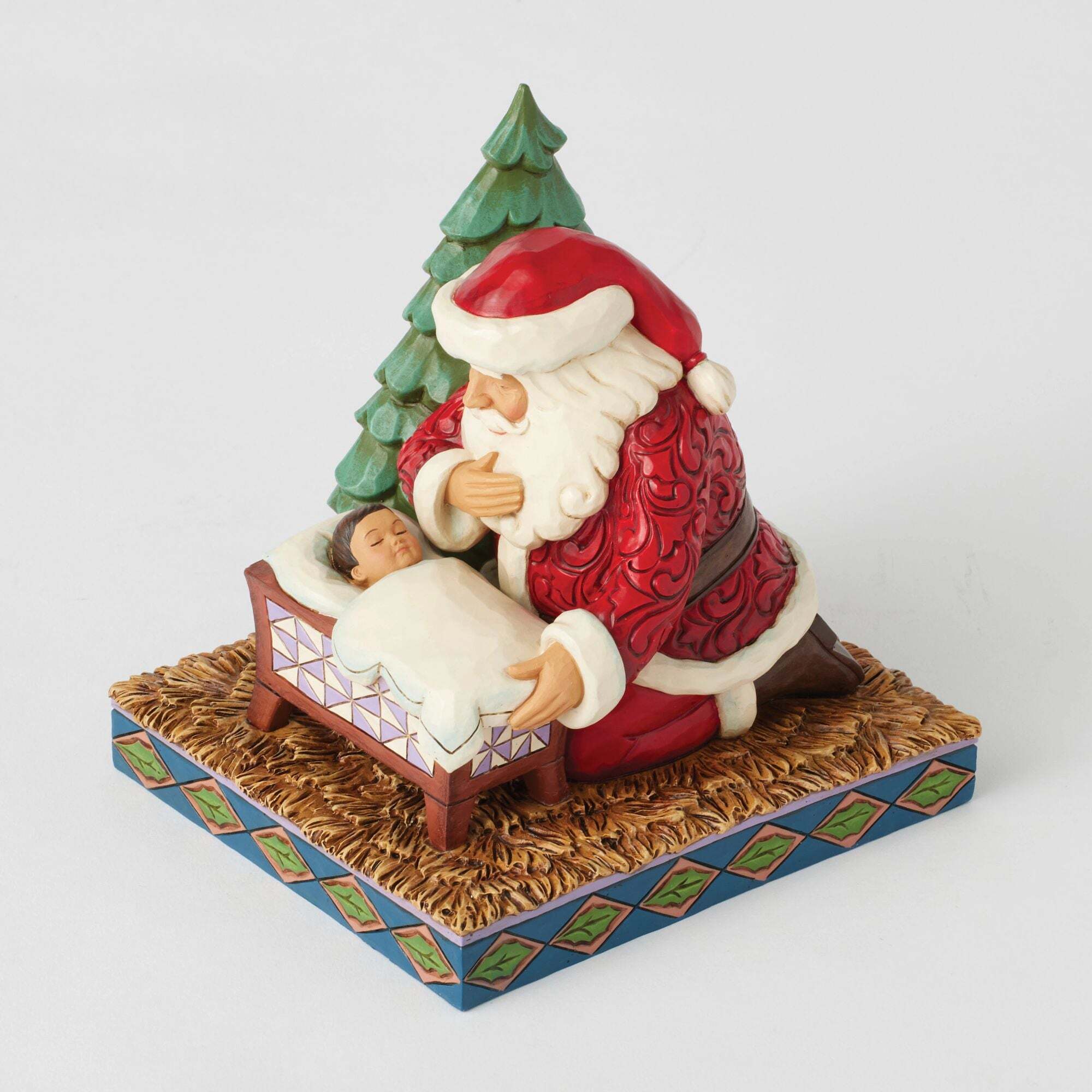 Figur Der Weihnachtsmann Kniet Über Dem Jesuskind - Heartwood Creek
