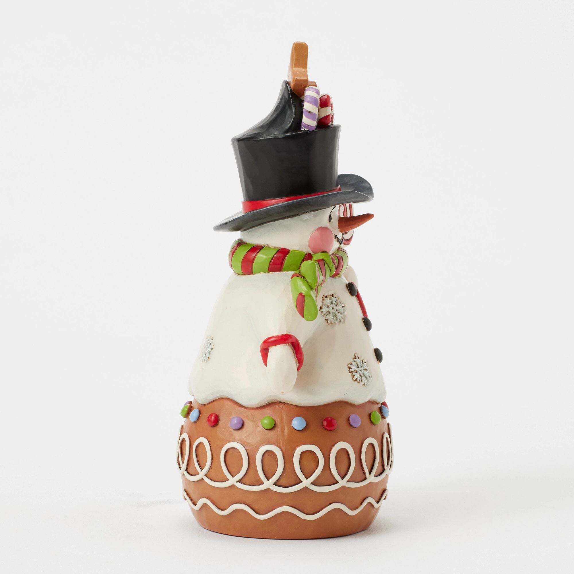 Dieser bezaubernde Lebkuchen-Schneemann von Jim Shore ist unwiderstehlich und mit Zuckerguss und Süßigkeiten verziert. Mit einem warmen Lächeln unter einem mit Leckereien gefüllten Zylinder verleiht diese Figur Ihrer Weihnachten eine verspielte Note.