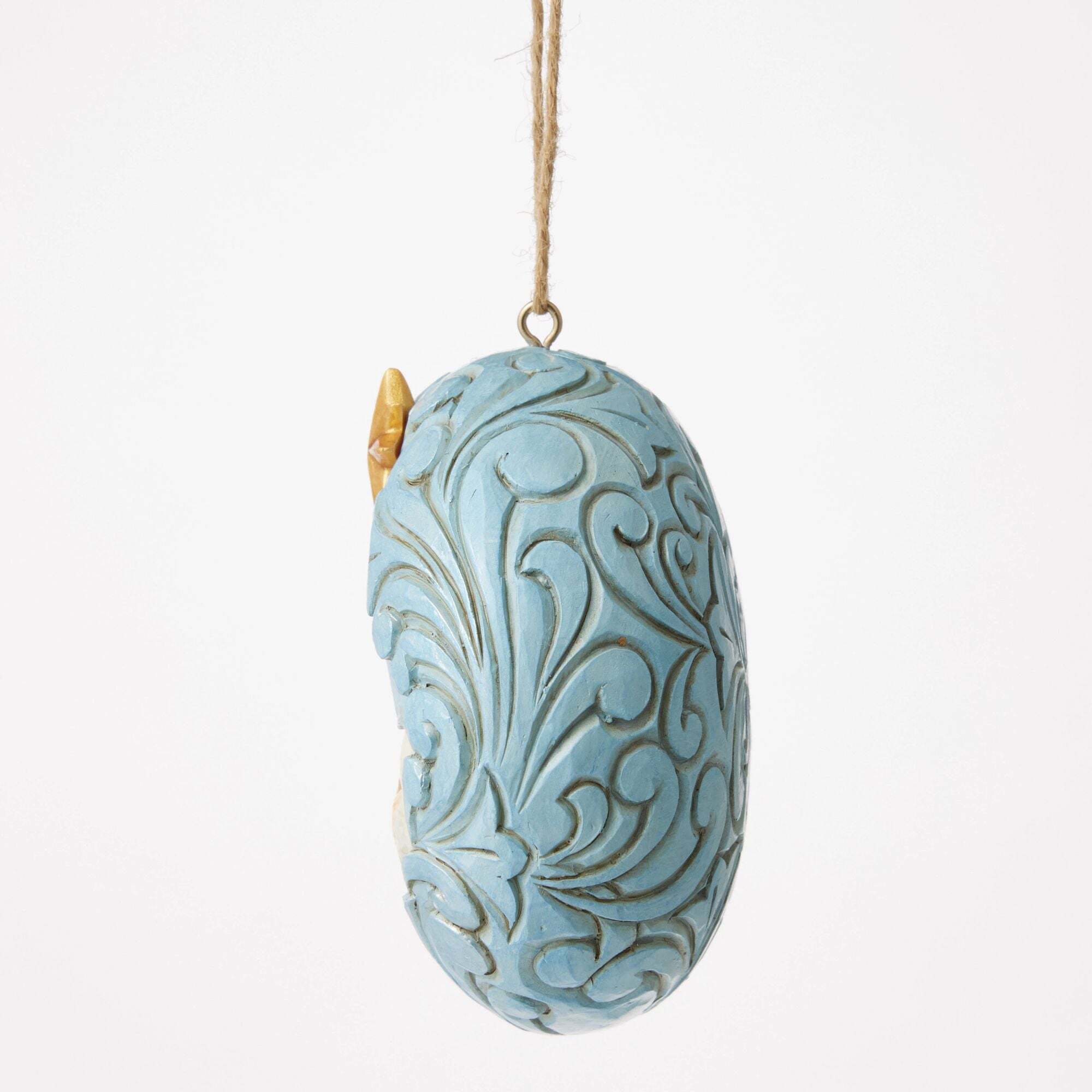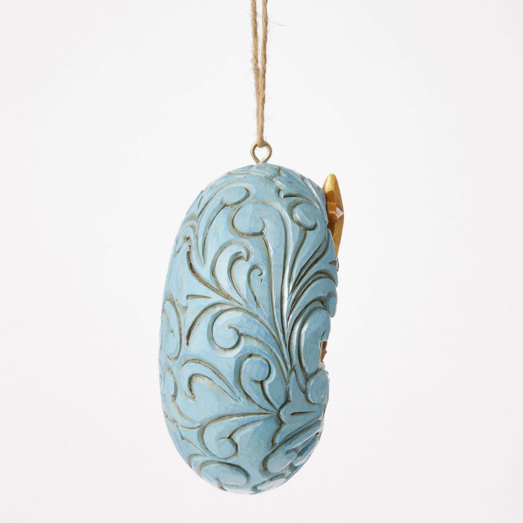 Dieser Anhänger von Jim Shore zeigt die Heilige Familie, über der der goldene Weihnachten vor einem beruhigenden blauen Hintergrund leuchtet. Die vielen exquisiten Details strahlen Frieden und göttliches Staunen aus.