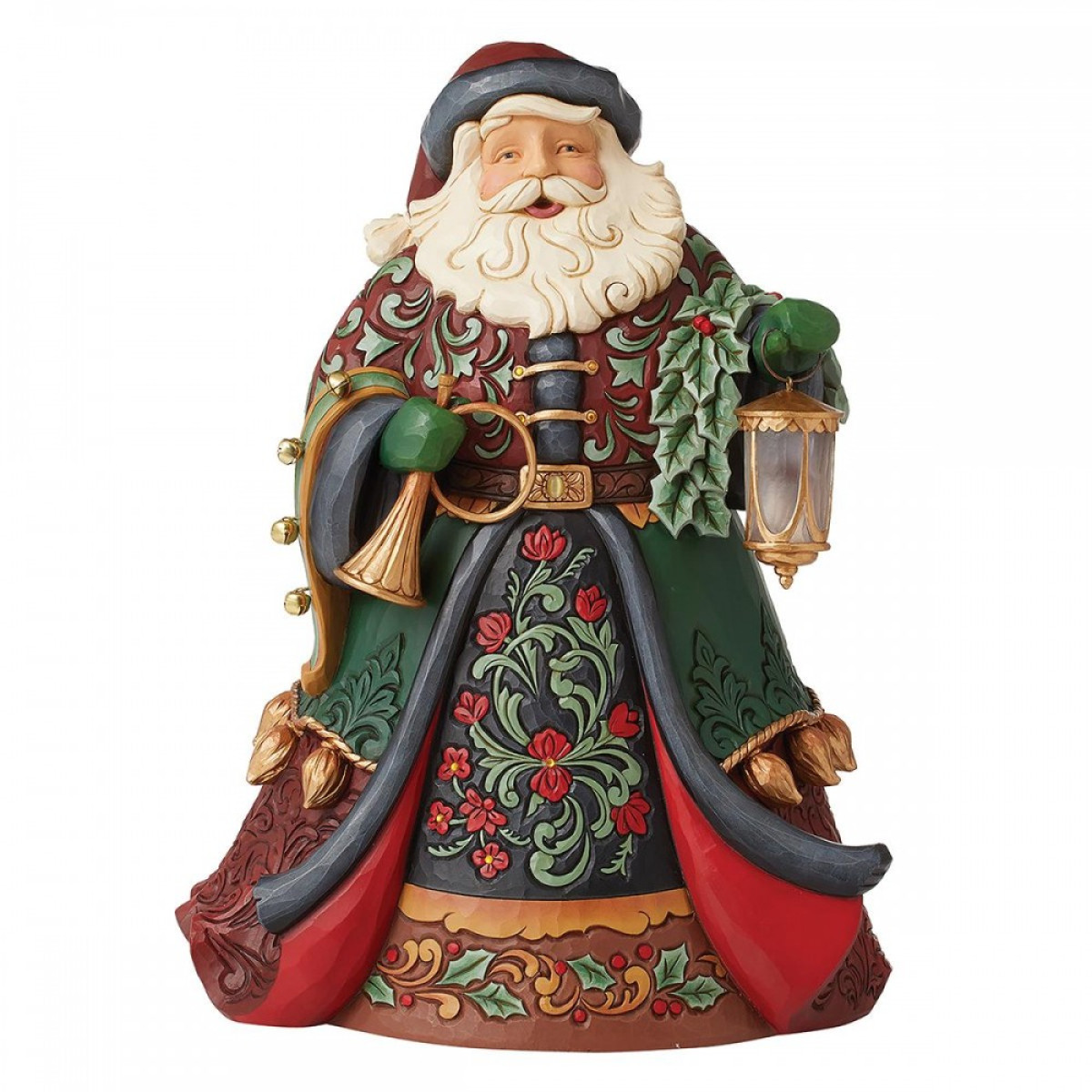 Diese Sammleredition von Jim Shores Weihnachtsmann ist ein Wunder an Farbe und Charme. Diese luxuriöse Weihnachtsmannfigur mit Horn, Laterne und Spielzeug weckt Spannung und Nostalgie. Mit seinen Glocken, Stechpalmen, Weihnachtssternen und prächtigen Kleidern ist es ein Meisterwerk. Material: Harz