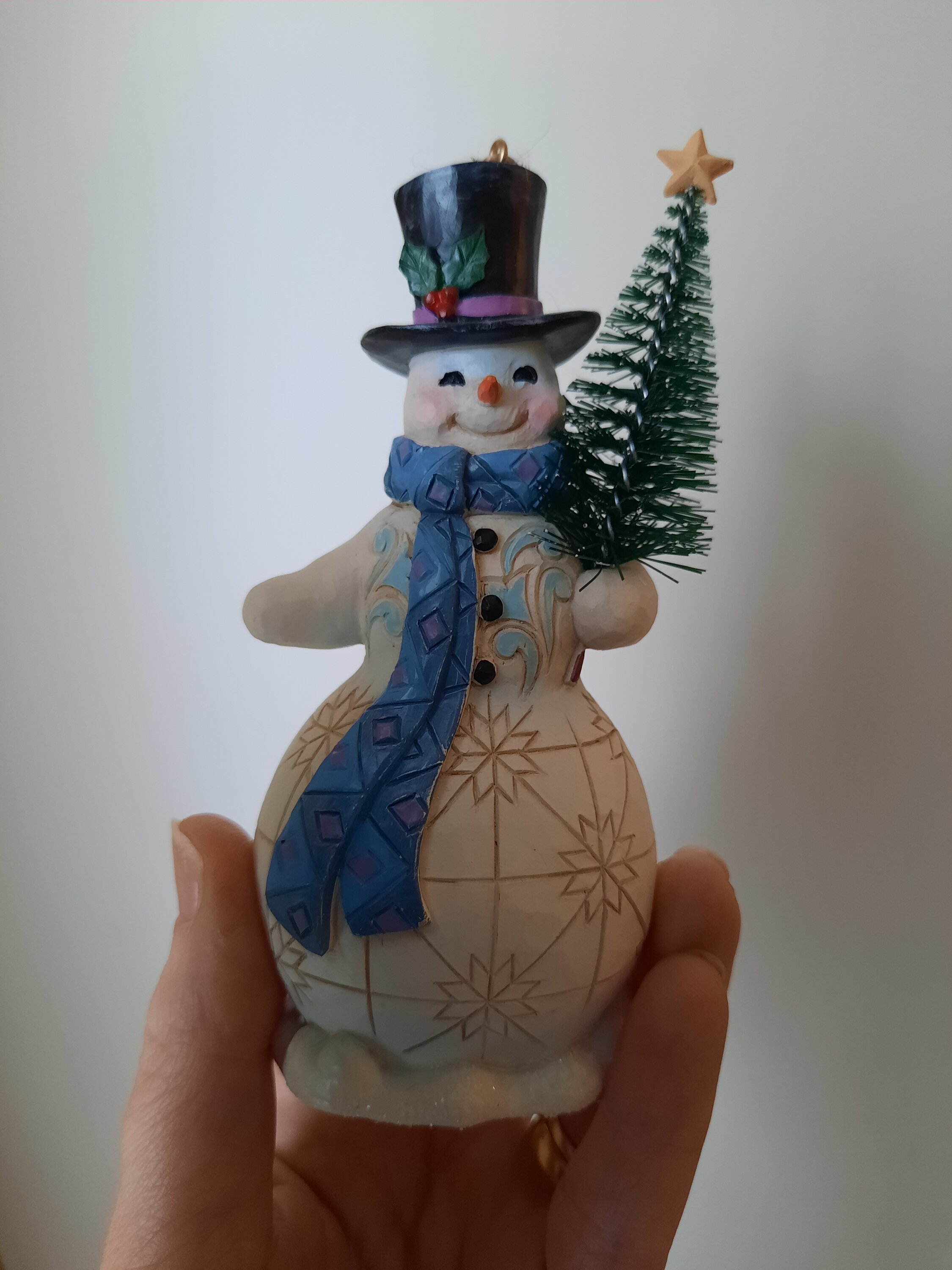 Dieser Schneemann ist einfach bezaubernd. Perfekt gearbeitet, mit einem niedlichen Gesichtchen und einem sehr realistischen Weihnachtsbaum, ist er zweifellos eine ideale Ergänzung für jede Sammlung. Er ist wirklich hochwertig verarbeitet und wird Sie nicht enttäuschen. Ca. 12,5 cm groß, mit glitzerndem Schnee am Sockel.