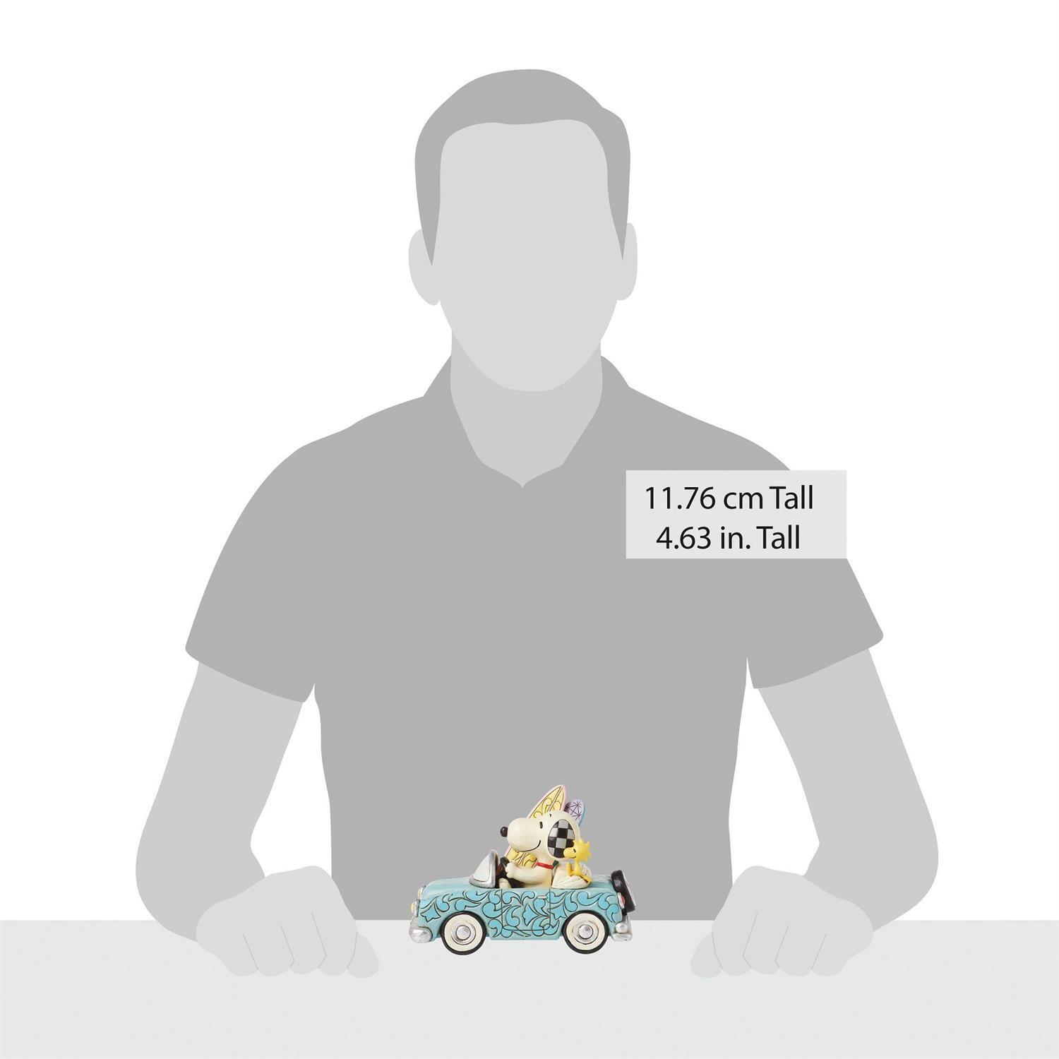 Snoopy sitzt am Steuer dieser entzückenden Kreation von Jim Shore . Er und Woodstock fahren in einem auffälligen Cabrio voller Surfbretter zum Strand. Das Paar bereitet sich darauf vor, in dem coolen Auto mit dem bezaubernden Rosemaling-Muster ein paar Wellen zu reiten.