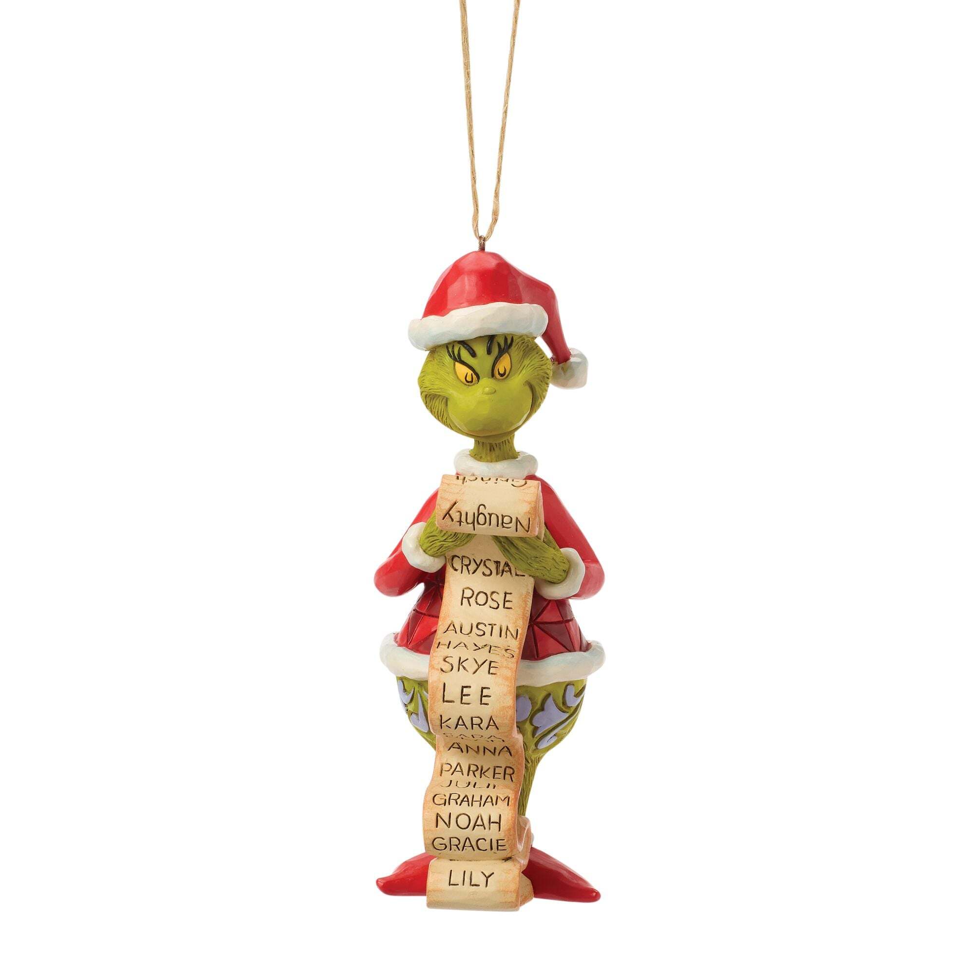 Im typischen Stil der Jim Shore -Volkskunst betrachtet der Grinch seine lange Liste von Schurken und stellt stolz fest, dass sein Name ganz oben steht. Diese verspielte Dekoration sprüht vor farbenfrohen Mustern und festlichem Charme und fängt die Schelmerei und Verspieltheit dieser Kultfigur in der Weihnachtszeit perfekt ein. Diese Artikel sind kein Spielzeug für Kinder. Nur für Erwachsene.