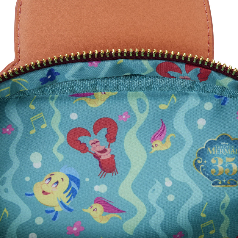 Schlagen Sie das Unterwasserband mit Stil an! Unsere Loungefly Disney Die Kleine Meerjungfrau 35th Anniversary Sebastian Crossbuddies® Tasche ist bereit für eine spektakuläre Show.
