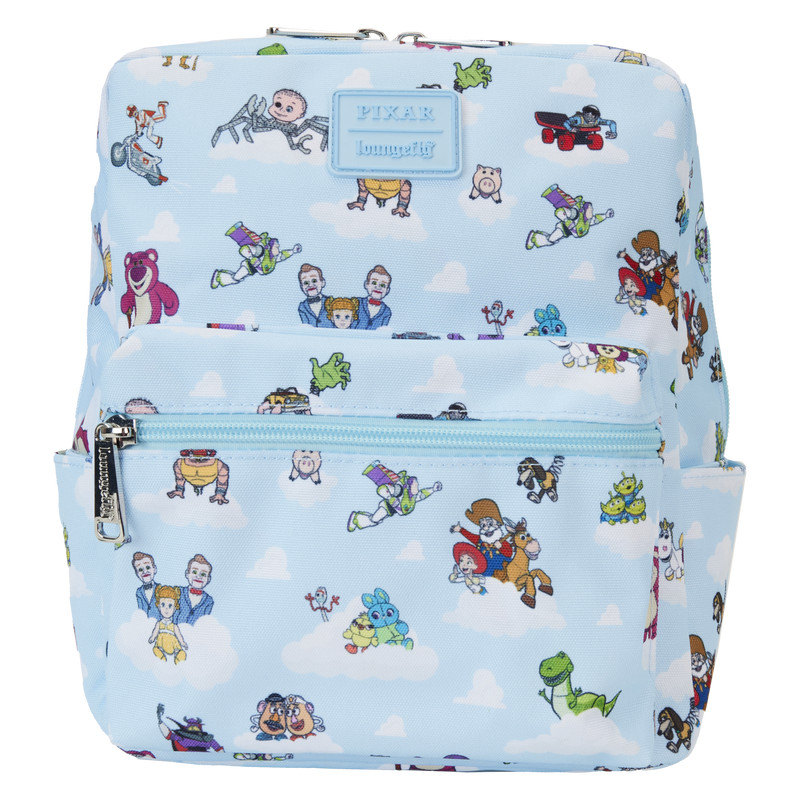 Trommeln Sie Ihre Freunde, es ist Zeit zu spielen! Der Loungefly Toy Story Movie Collab AOP Nylon Mini-Rucksack vereint unsere Lieblingsspielzeuge aus der gesamten Disney-Pixar-Reihe.
