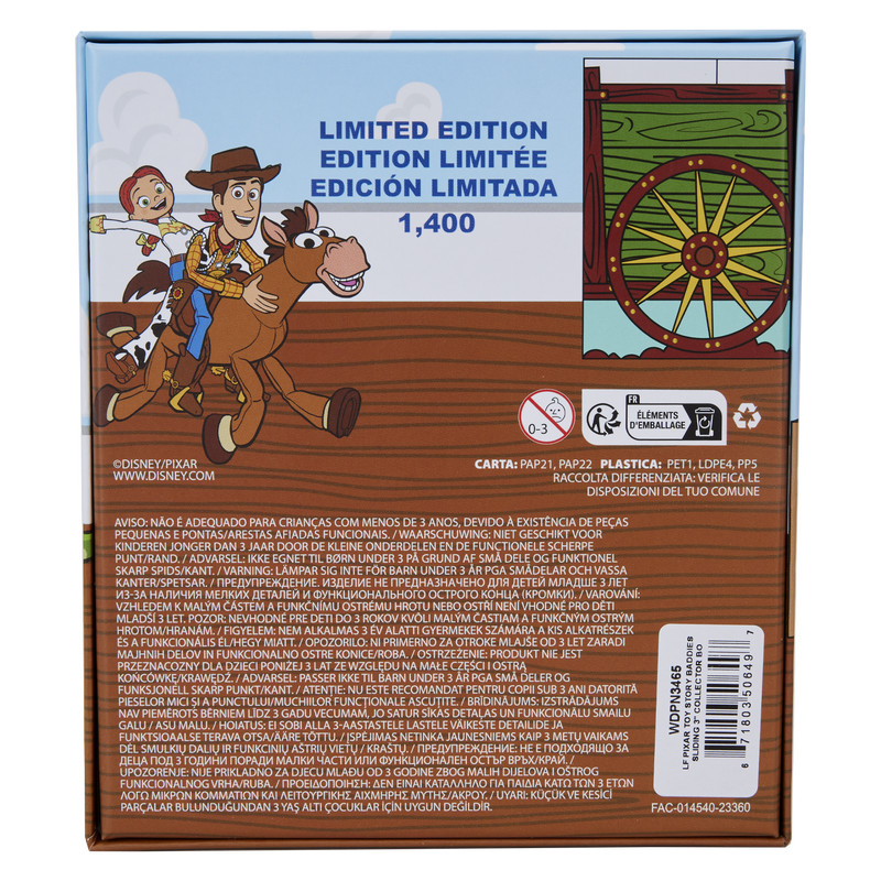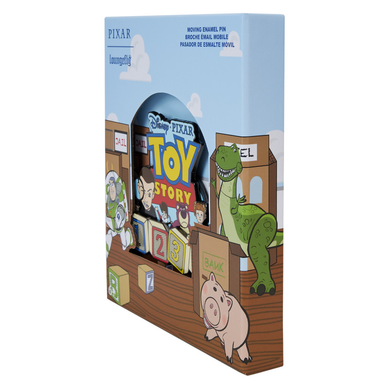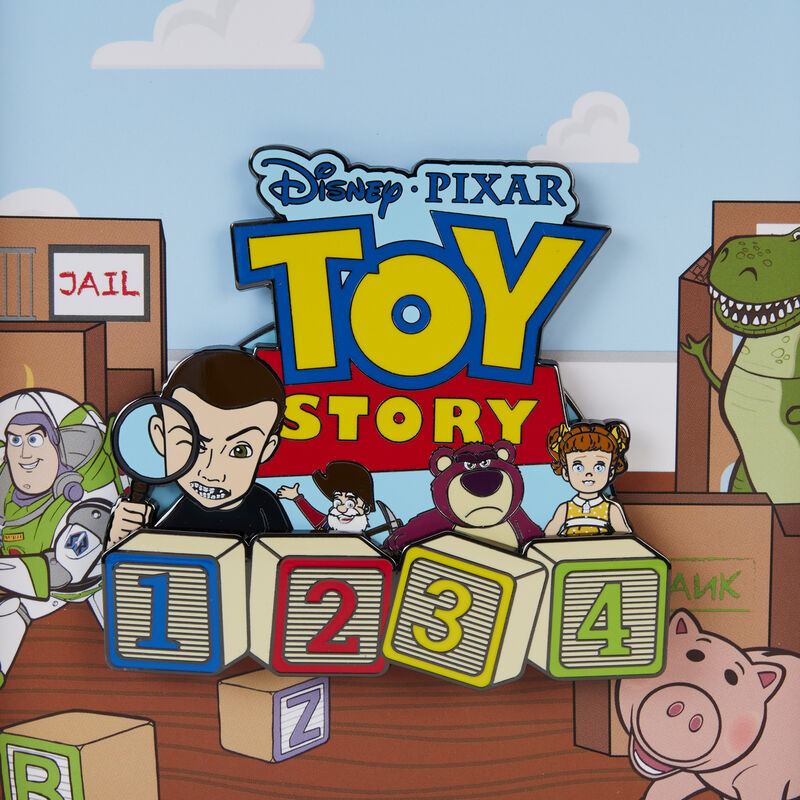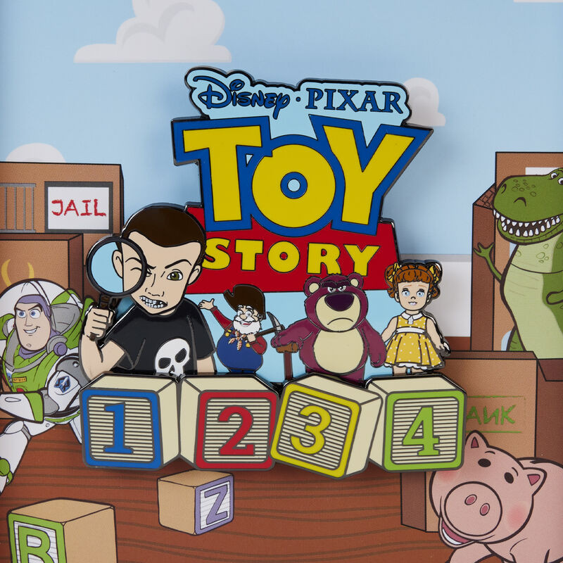 Trommeln Sie Ihre Freunde, es ist Zeit zu spielen! Der Loungefly Toy Story Baddies Sliding 7,5 cm Collector Box Pin ist eine Hommage an unsere Lieblingsschurken aus der gesamten Disney-Pixar-Reihe.